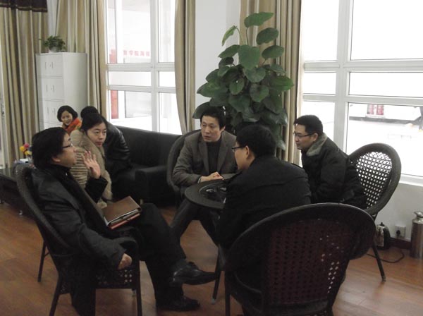 图2、校党委牟德刚副书记和蔡曙光委员了解学院党建工作情况