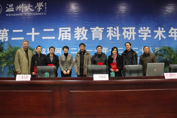 潘玉进教授主持年会并作大会筹备情况报告,他表示本届年会的投稿论文质量有明显提高,经专家评审,共评出朱家德《现代大学章程的分类研究——基于章程文本内容分析的实证研究》等5篇论文为一等奖,池福淑《高校网络教学资源平台的学生满意度调查研究》等12篇论文为二等奖,章志图《城市化进程中农村大学生的就业困境及救济》等24篇论文为三等奖;瓯江学院与教师成人色情