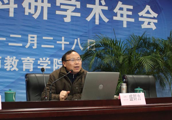 浙江大学博导盛群力教授做《意义学习与教学促进》主题报告。盛教授以他教学设计研究的视角,用他的博学多识、独特思考给现场师生介绍了国内外先进教育理念和思想,并围绕有效教学中的促进发展、培养能力、意义学习、扶放有度四个要义展开,在短短的一个半小时内,用他对教学设计的激情和博学,给大家带来了一顿教育科研思想的饕餮大餐。