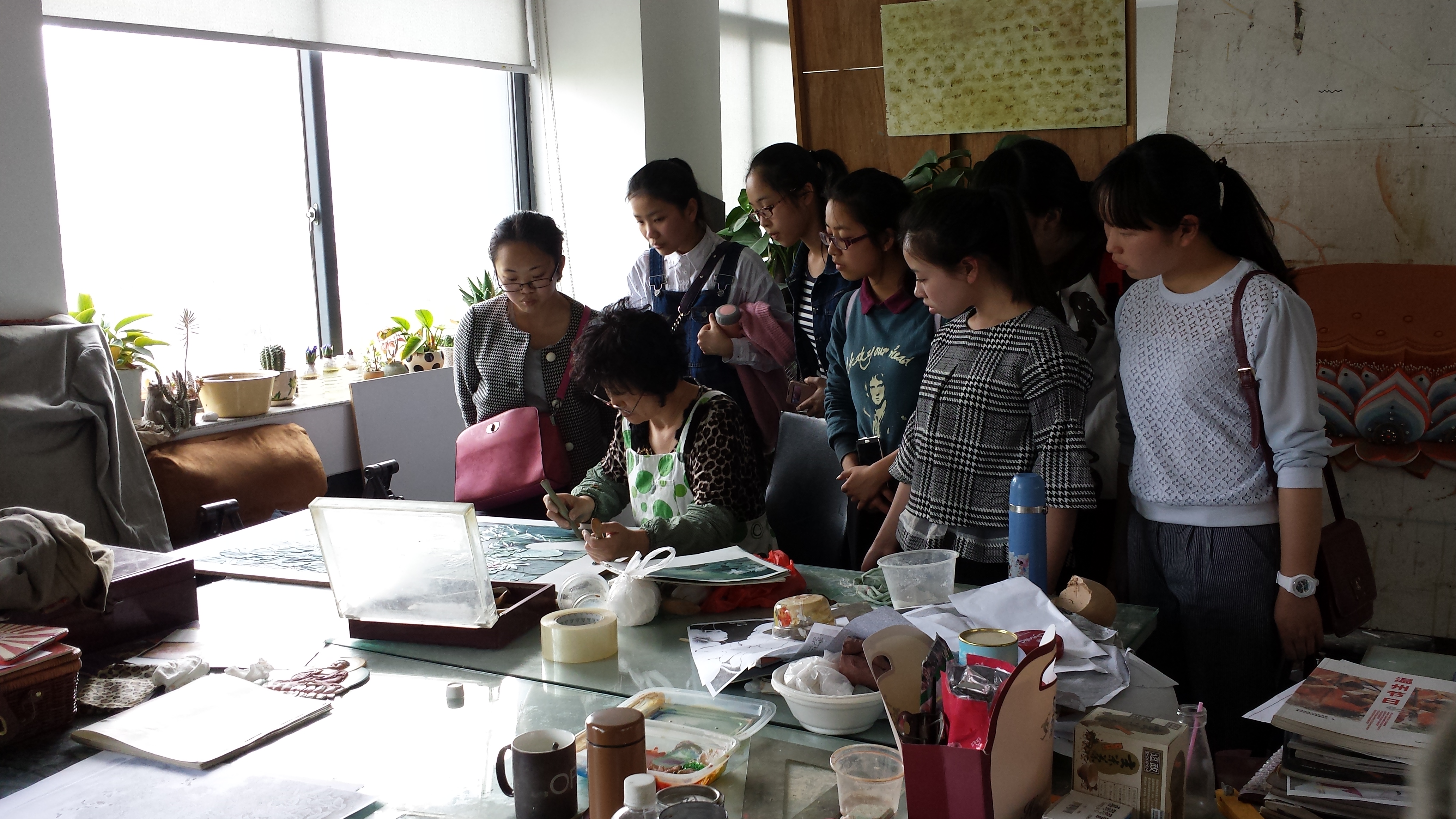3月26日下午,在陈铿老师的带领下,美术工作坊的成员参观了温州市工艺美术研究院的瓯塑研究所。