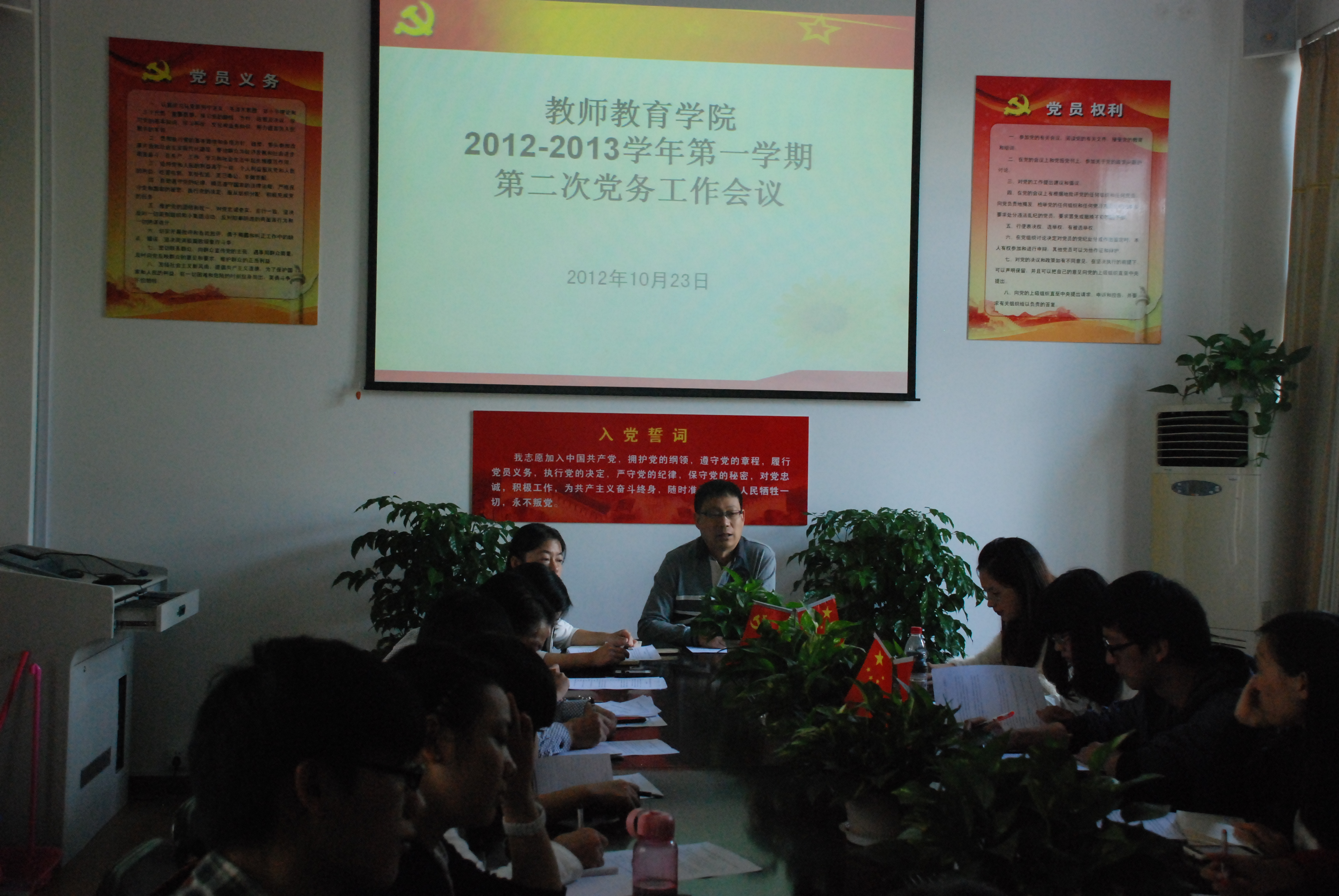 首先,蔡书记对开学初至今学院党建工作进行小结,并充分肯定各党支部所开展的工作,他希望各支部和全体党员继续保持良好的精神风貌,迎接党的十八大胜利召开。
