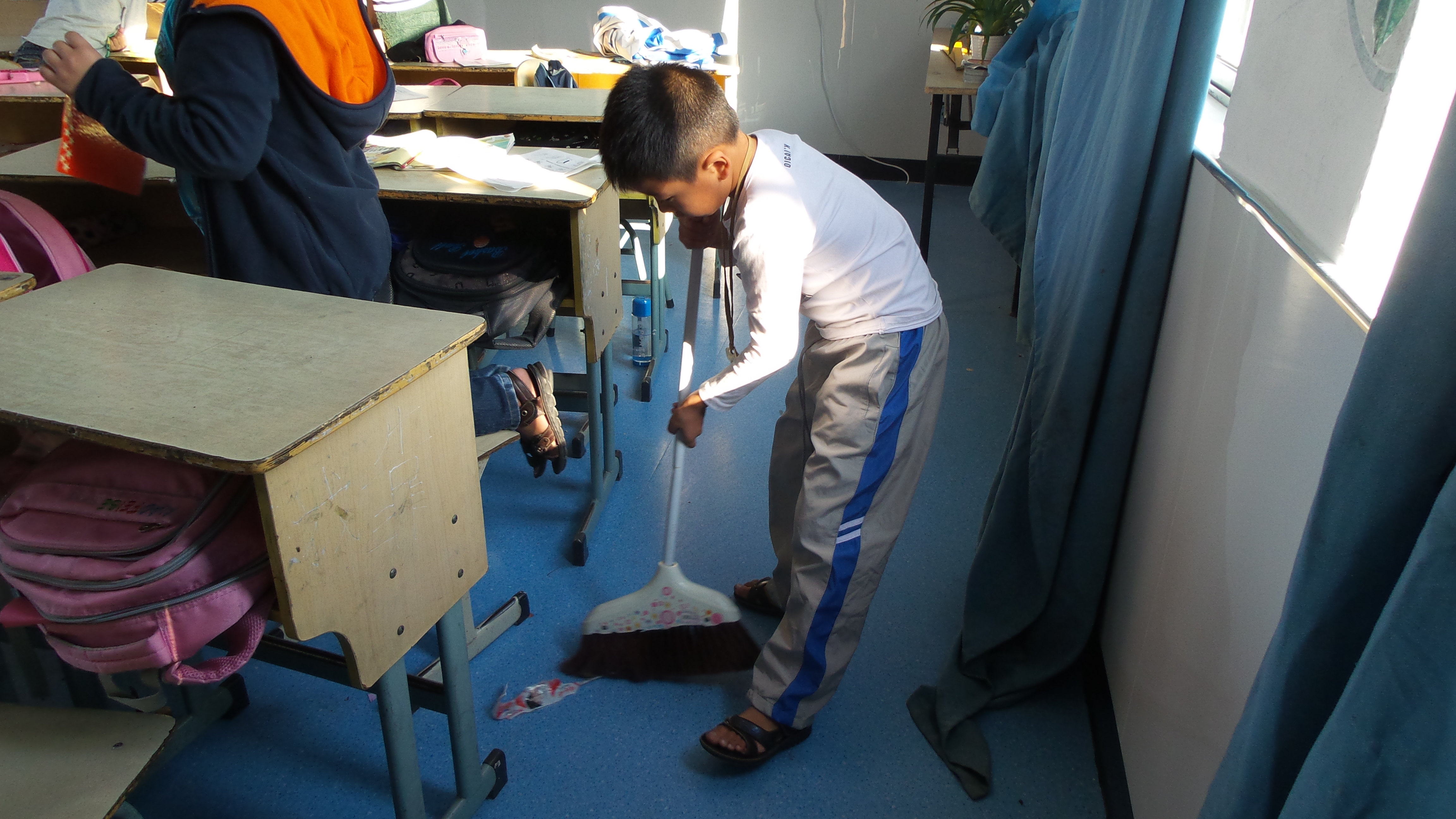 刚踏进校门,就看见孩子们欢乐地跳着皮筋,愉快地在操场上奔跑,他们一个个红着脸蛋,却依然充满着活力,朝气蓬勃。孩子们很热情,时不时有几个俏皮的孩子会凑到我们跟前,向我们问好。到了教室,我看到几个孩子在扫地,他们认真的神情,好生可爱。