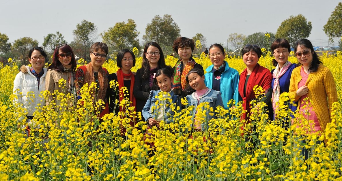 我们的第一站是观赏瑞安桐浦油菜花。桐浦油菜花曾经在人民网旅游频道主办的“中国最美的油菜花海”评选活动中排名第七,可谓远近闻名。今年桐浦油菜花又实现了万亩连片,而且这一天正值“油菜花节”开幕,花正盛开,游人如织。上午10点许,教职工们来到桐浦油菜花基地,与蜜蜂一起徜徉花海,一个个脸上绽放出了美丽的笑容,欲比鲜花。