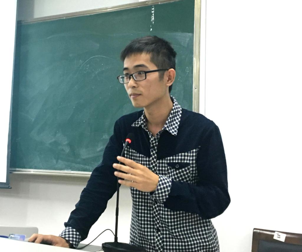最后一位是来自金属有机化学专业的学长戚林军,他分享的化学实验给同学们带来了震撼的效果。他的论文是关于过度金属催化腈与芳基硼试剂反应研究。他用严肃而不失风趣语言细致的讲解了自己的关于金属催化腈与芳基硼试剂反应的课题研究,同学们都仿佛跟随着学长来到了另一个神秘而有有趣的化学世界。