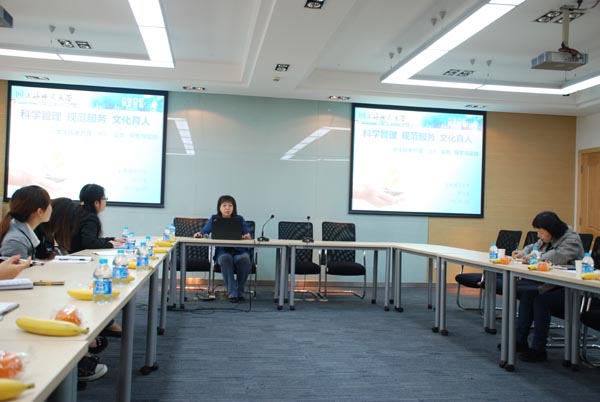 向上师大的领导和老师们作了简单介绍,并表示要向上师大好好“取经”。张兰主任首先介绍了本校学生管理及学生公寓工作的情况,并向我们着重讲述了“五进”学生宿舍的工作思路,即思想教育进园区、党团教育进园区、文化和学术活动进园区、就业指导进园区、心理健康教育进园区。希望通过“五进”宿舍活动,可以达成学生党员受教育,全体学生得启迪,综合素质上水平,全面发展见成效的局面。在后勤管理方面,张红英副总从“六T”简介、“六T”历程、“六T”建设、“六T”成效四个方面对“六T”实务工作作了详尽的介绍。秉着“设身处地为学生着想,真心实意为学生服务”的工作理念,后勤集团通过“六T”工作的开展,真正做到了“常规工作抓落实,重点工作抓推进,特色工作抓拓展”。最后,谢青书记从“大学工”工作理念、辅导员队伍建设及师范生专业培养三方面介绍了上海师范大学成人色情
