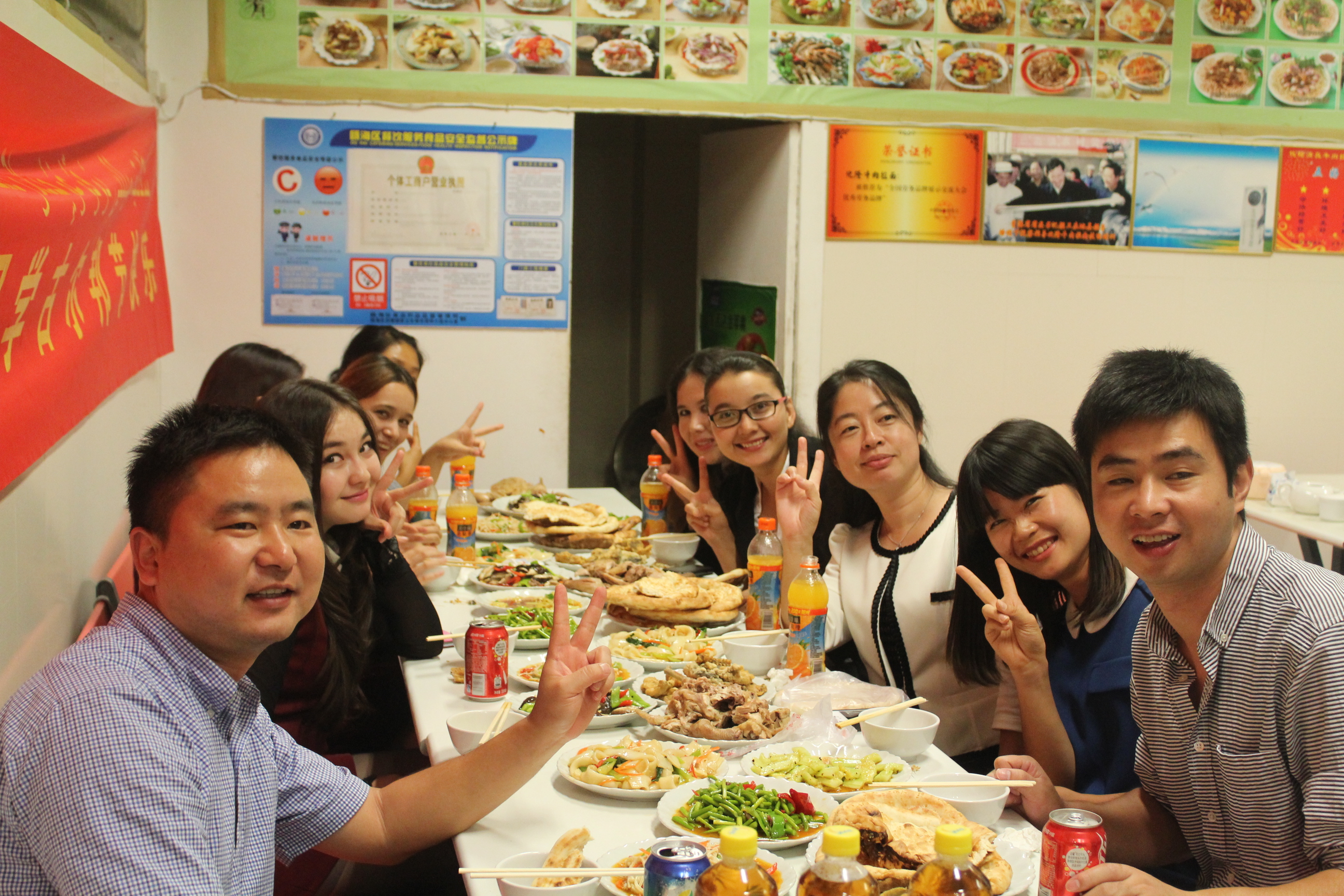 还邀请了其他兄弟学院的新疆籍少数民族同学共庆古尔邦节。大家欢聚一堂,共品清真菜,同贺佳节。晚会上,嵇书记幽默风趣地给我们来了开堂乐,章书记不甘落后,也畅谈了他的新疆游历经历。欢乐氤氲在空气中,喜悦洋溢在张张笑脸中,其乐融融。快乐的脚步马不停蹄,舞蹈、唱歌、合照蜂拥而至,多才多艺的新疆同学让聚餐丰富多彩。餐桌上,嵇书记温切地关怀新老同学,阳光般的笑容温暖灿烂。章书记则传授学习经验,畅谈人生阅历,还给我们讲了溯初学区兰州拉面店的由来。此间,老师学生的头衔早已烟消云散,剩下的只是朋友间真挚的交心。每分轻松的愉悦定格于张张相片,记忆成了永存的珍贵。一举手,一投足,尽是淋漓尽致的快乐与满足。