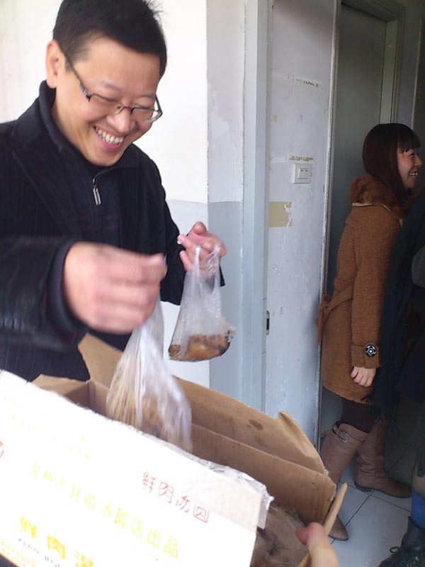 每到一个寝室,老师们都会关心的询问学生的近况,了解学生的实际困难。学院党总支蔡联群书记在寝室里还和学生聊到了很多有关学习的事情,他说:“马上临近考试了,大家一定要好好复习、充分准备、积极应考,冬至日快到了,你们都没法回家,我们学院的老师给你们送汤圆来了,希望你们冬至节快乐”。同学们在欣喜的同时又充满着感激,也声声祝愿学院老师“冬至日快乐”。师生间其乐融融的气氛驱散了所有的寒冷,笑声充满了整个房间,我们也用相机记录下了这温馨的时刻,永远无法忘怀的一刻。接到热乎乎的汤圆,学生们感动之余,纷纷表示,虽然在冬至日里,我们没法回家与亲人团聚,但我们大家都得到了学院老师们的关心,这小小的汤圆让我们在这个没有亲人陪伴的冬至日多了温暖与温馨。我们一定好好复习充分准备,争取向学院交上自己完美的答卷。