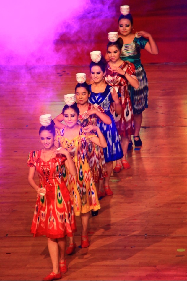 新疆班同学带来的顶碗舞,让观众们领略到了少数民族的热情。师生载歌载舞,学院欣欣向荣。