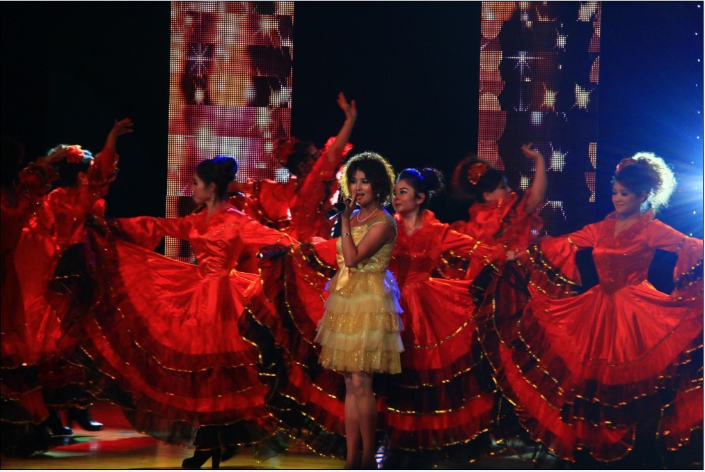 最后,全体师生带着对2013年的美好期待,在歌声、笑声与掌声中,伴着动听的歌伴舞《七月的草原》落下帷幕。