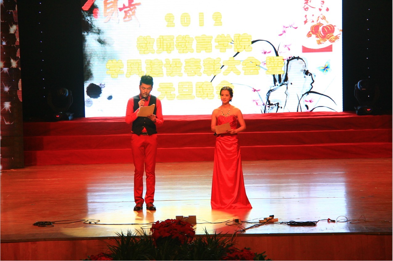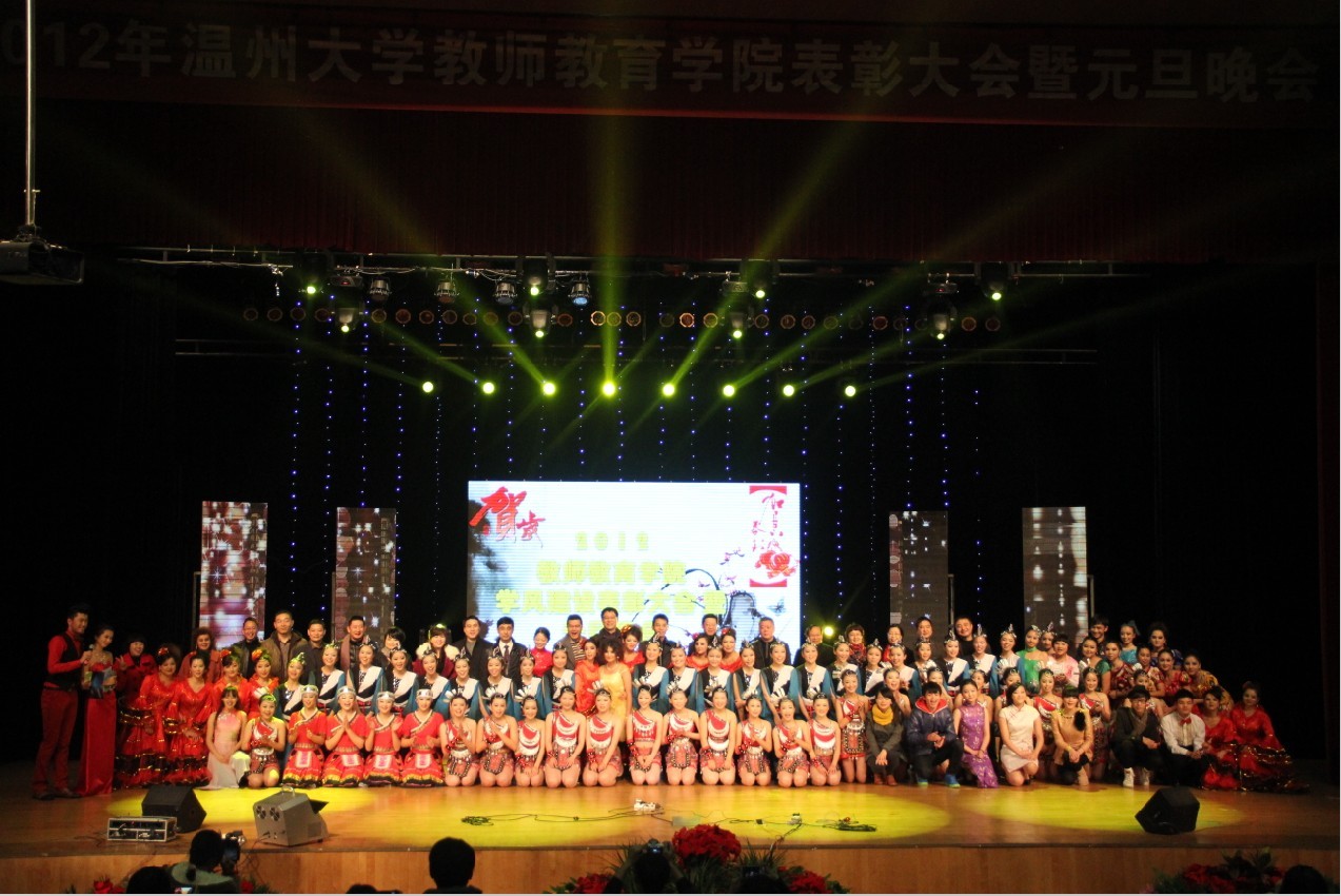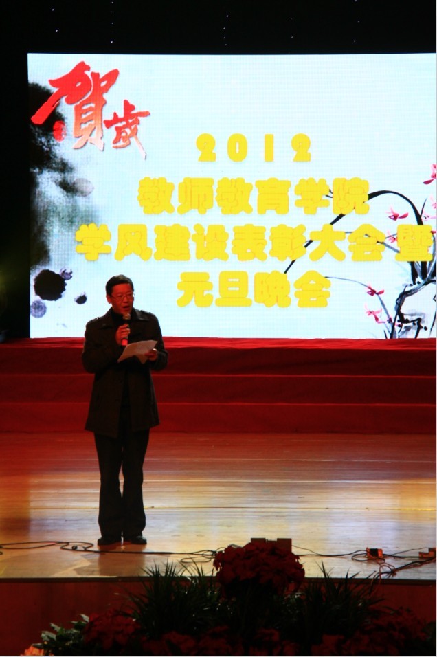 2012年学风建设表彰大会暨元旦晚会在大学生演艺中心隆重举行。原校党委书记陈艾华、校团委副书记叶正飞、溯初学区副主任章志图及学院领导郑信军、蔡联群、孙芙蓉、彭小明、胡瑜、嵇小怡等与学院50多位教师、1000多名学生共同参加大会。表彰大会暨元旦晚会在温馨的师生新年祝福视频后拉开帷幕。