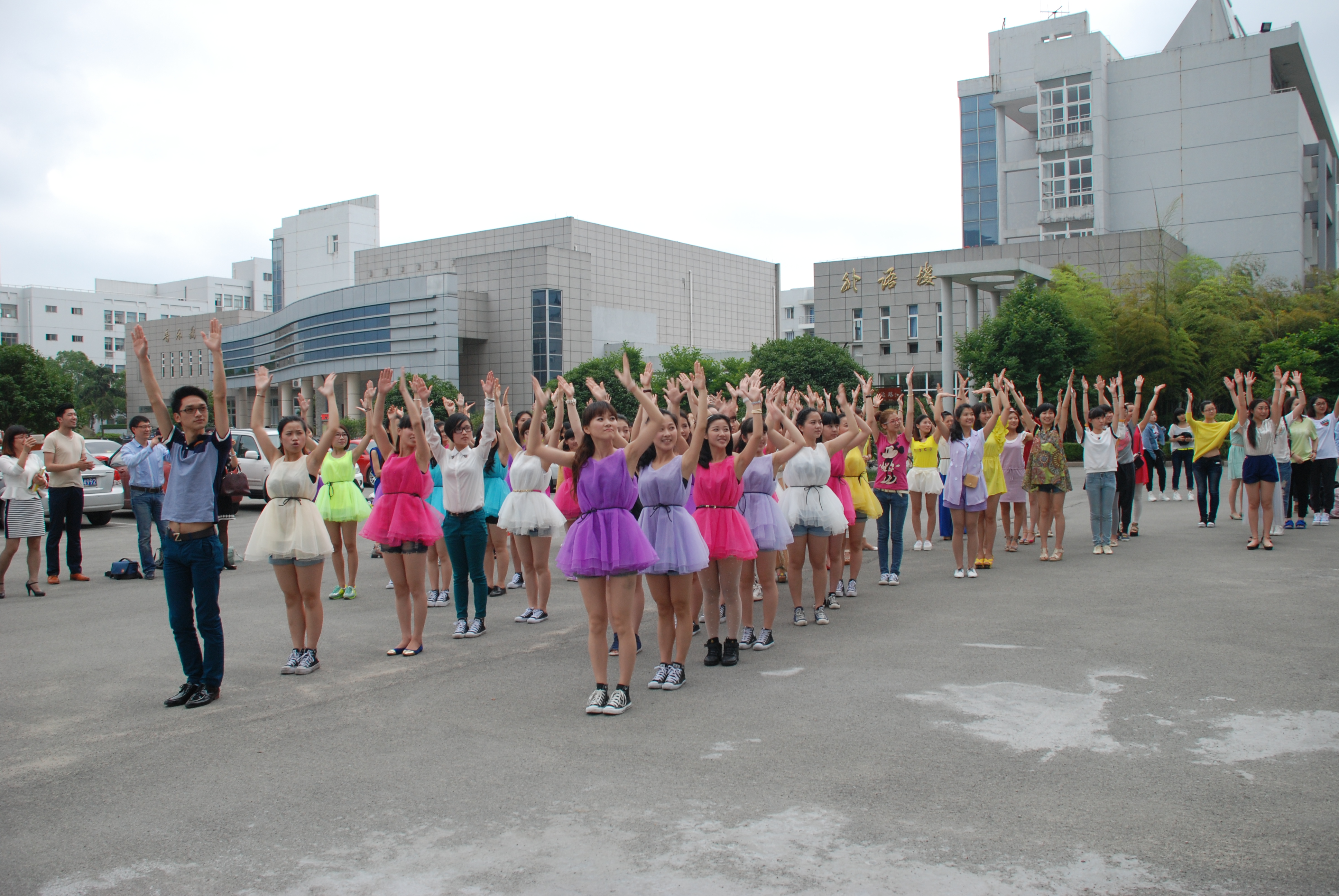 的毕业生们拍完毕业照后,就在拍照现场11学前大专1、2、3班的毕业生们用他们最青春洋溢的方式——舞别母校。简单的扩音设备播放出律动的旋律,她们表演了自编自导自演的韵律操,带动在场所有的同学、老师跟他们一起舞蹈。她们再一次把最青春、最靓丽、最难忘的风景线留在母校!
