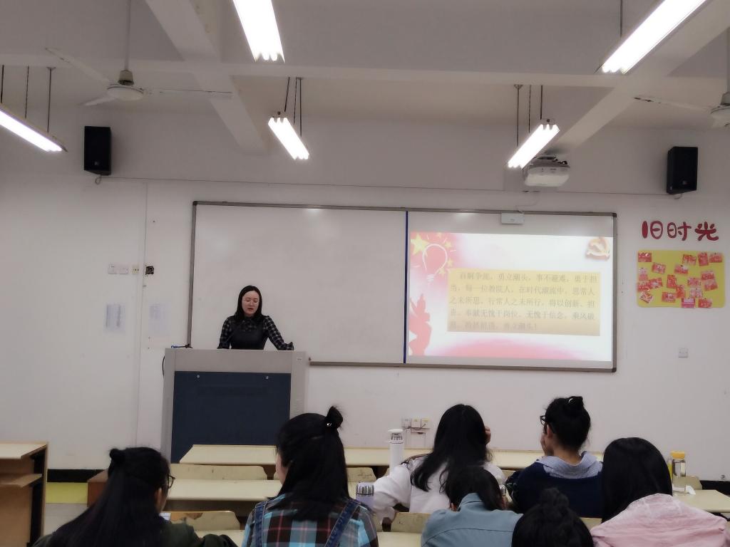 主讲人黄伊梦同学在微党课中,用习近平的一句话来表明她眼中的担当:敢于做先锋,不做看客,不当过客,创新创业与环保责任是我们90后的担当!并且鼓励同学们团结起来,共同担当,俗话说:众人拾柴火焰高。