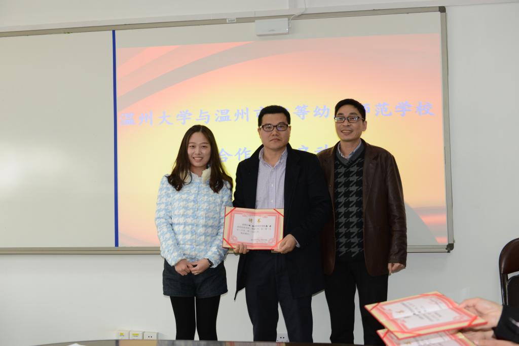 院长郑信军教授、副院长胡瑜教授,温州市中等幼儿师范学校校长蒋高烈、副校长戚强建,学前系主任曾国以及导师、“课标”研制负责人等38人。仪式内容分“拜师学艺仪式”、《课程标准》研讨、课程设计(人才培养方案)研讨等。