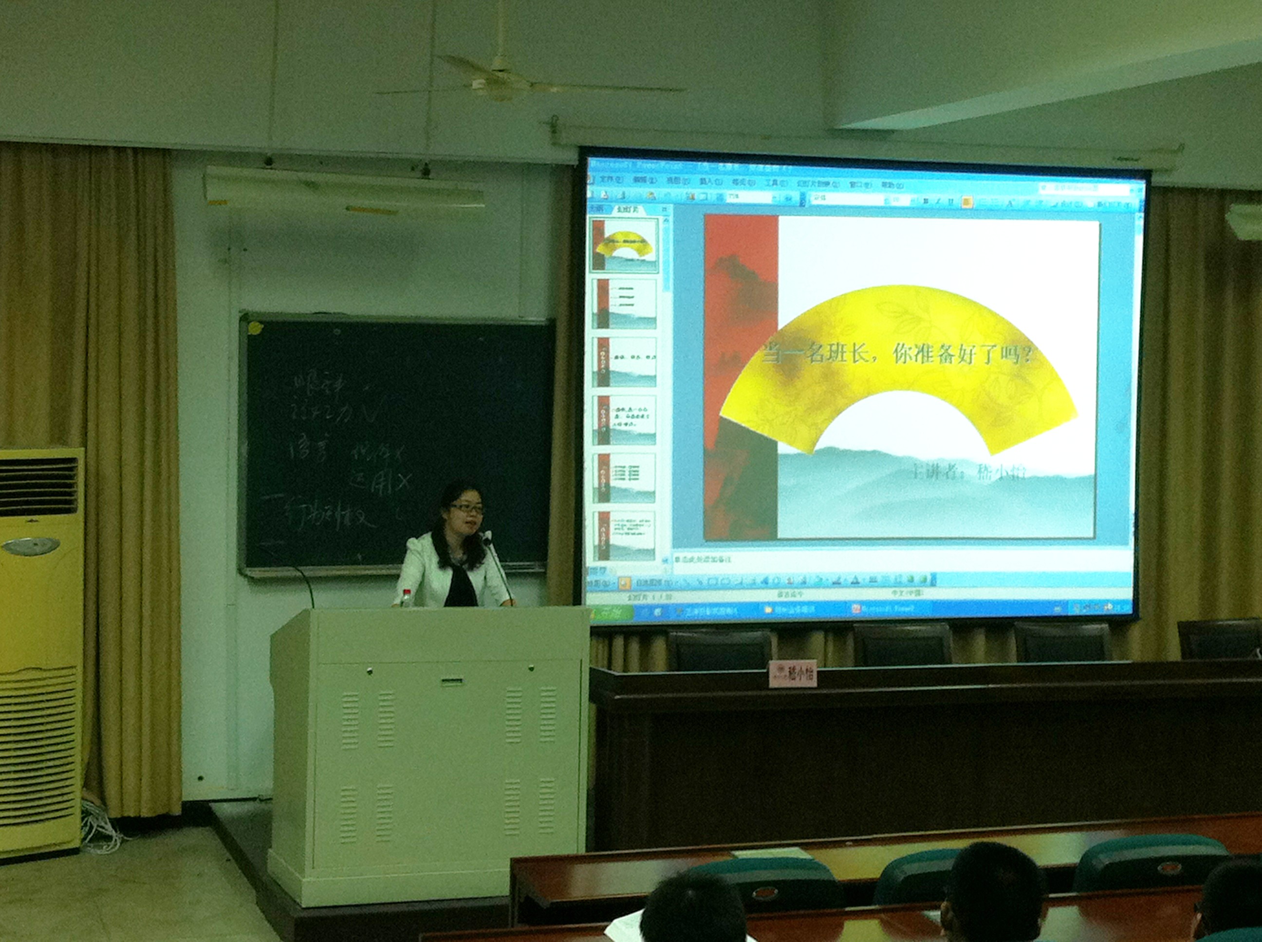 学生会于2012年10月11日晚6:30,在北校3号楼101教室,成功举办了班长业务学习会。本次讲座由嵇小怡副书记主讲。