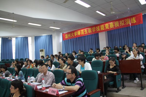 本次活动全程模拟浙江省高等学校师范生教学技能竞赛的程序,设有“教学设计”、“多媒体课件”、“说课•板书•模拟上课”、“即席讲演”等4个环节。由相关专业指导教师对参赛选手进行逐一点评、指导。选手们幽雅潇洒的仪态,声情并茂的讲解,驾轻就熟的课堂调控能力,都给在座的师生留下深刻的印象。