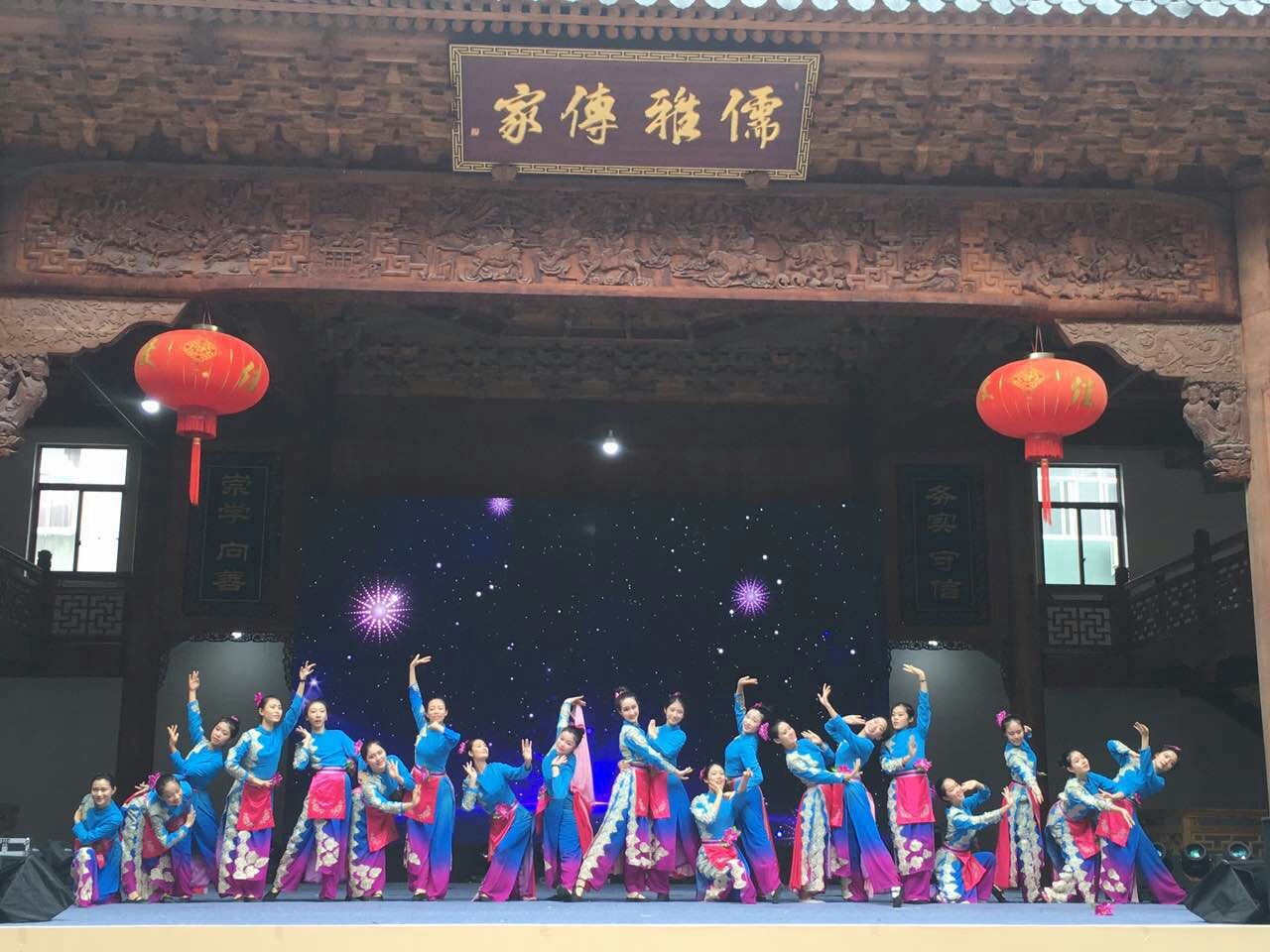 据了解,该文化礼堂和舞台是由原先闲置的蔡氏宗祠改造而来,既保留了它的历史余韵,又增添了一番艺术气息,更是丰富了当地村民的业余生活。为了带来更好的演出效果,学生演员们不顾连日来学习和训练的疲惫,一次又一次地联排、踩台。舞台上,她们用娴熟优美的舞姿、独具特色的舞韵,为村民观众们带来一场文艺盛宴,展示了教院学子的气质和风采,用行动诠释了教院学子求真、务实、肯干的精神。