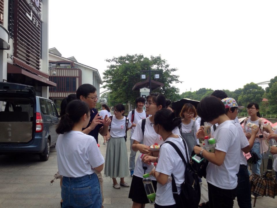 成员们向老师详细介绍了实践队的开展情况。郑院长对实践队提出几点良好建议,指出实践需要亲近社会、了解社会,要思考如何更好地与社会接轨,而不能仅仅停留在表面的自然风光,如可以与南塘周边商家、居民进行访谈对话,深入了解塘河变迁及现状问题等,要将自然环境与人文环境结合起来,以丰满实践的内容。杨丽君老师与队员们进行了亲切沟通,并始终强调实践期间要把安全工作始终摆在第一位,做好防暑工作,注意出行安全。