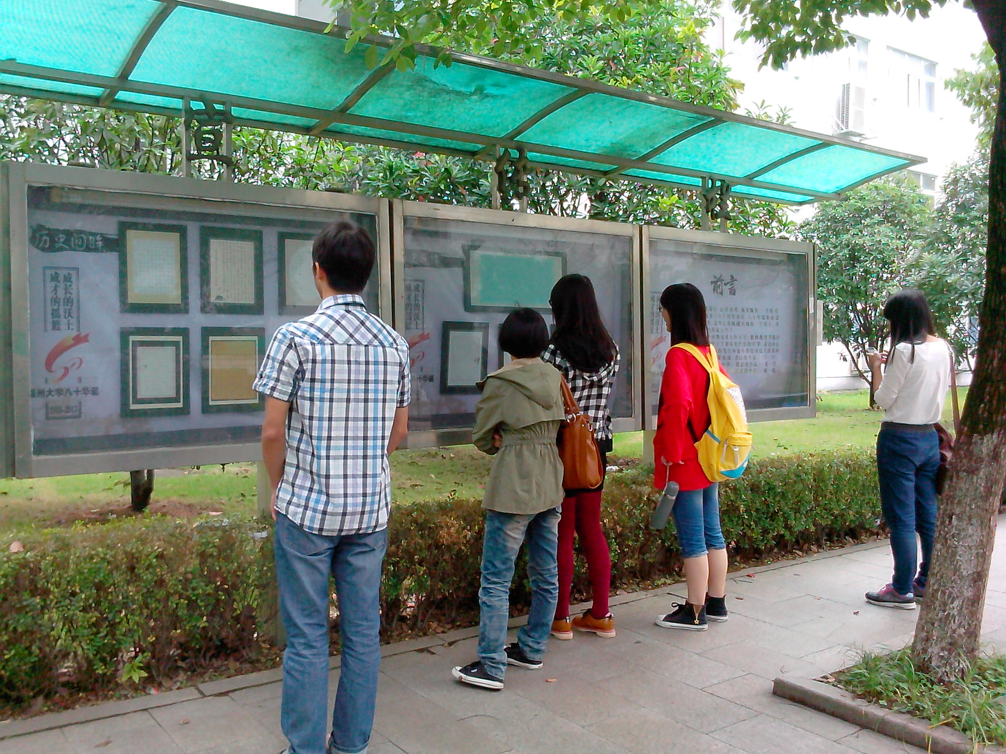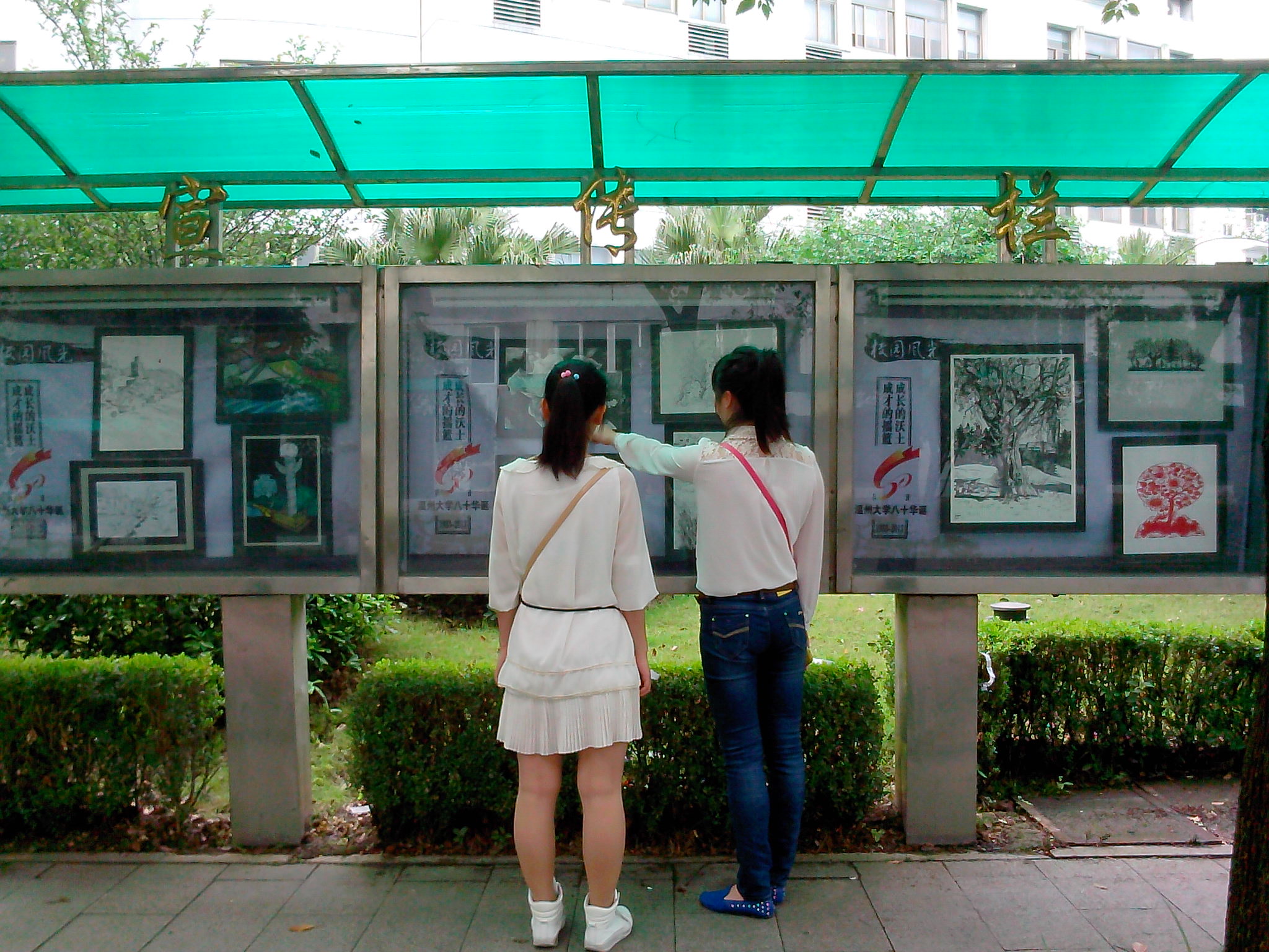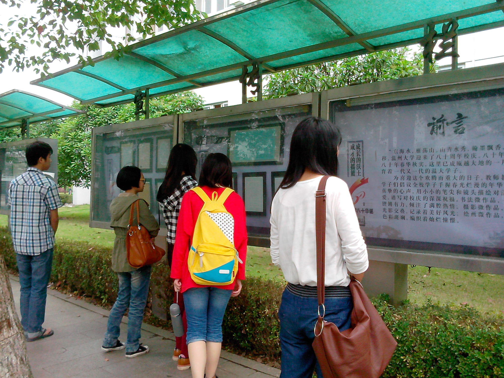 过往成绩的回忆,更是展望了母校的美好前景。这些反映校庆祝福、校园生活的原创作品,深深吸引了路过的学子们,纷纷驻足观赏,并借欣赏微校庆作品关注温大八十年校庆。