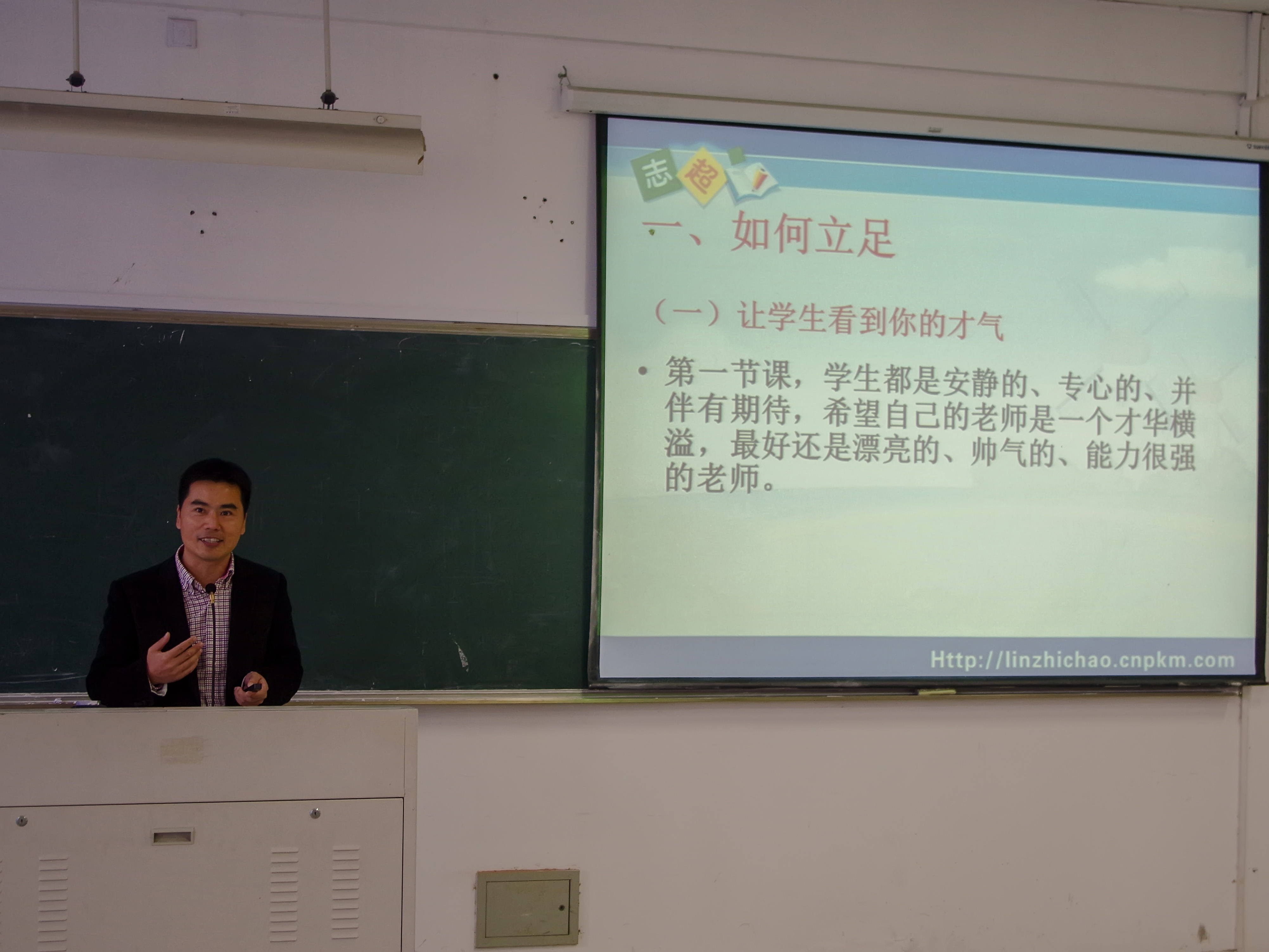 在北3—301召开了名师大讲堂活动。本次活动的主讲人是温州市苍南县潜龙学校的特级教师林志超老师,主题是“给‘准教师们’的真诚建议”。本次活动由小教工作室承办,到场的还有潜龙学校的多名教师以及12级小教全体学生。