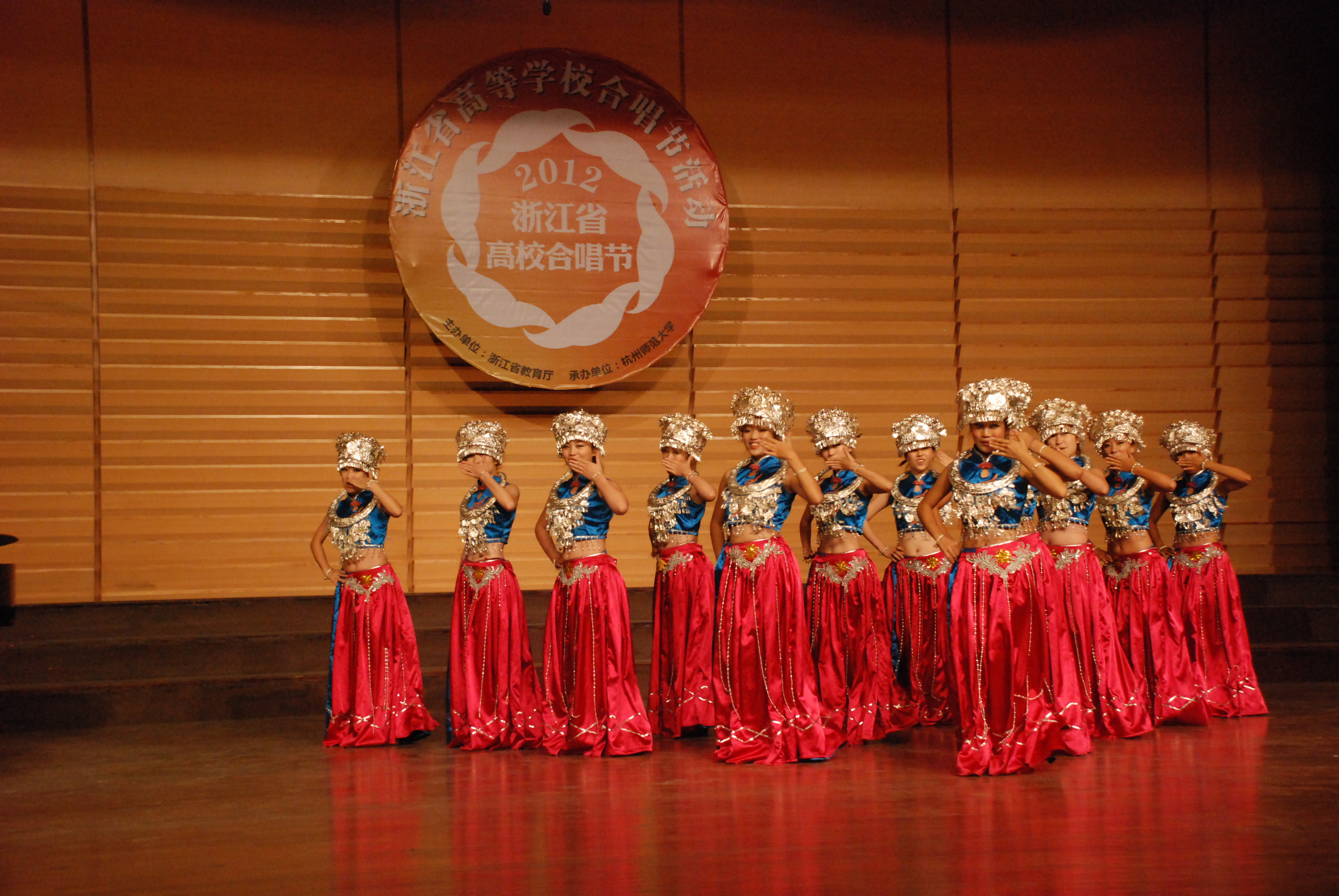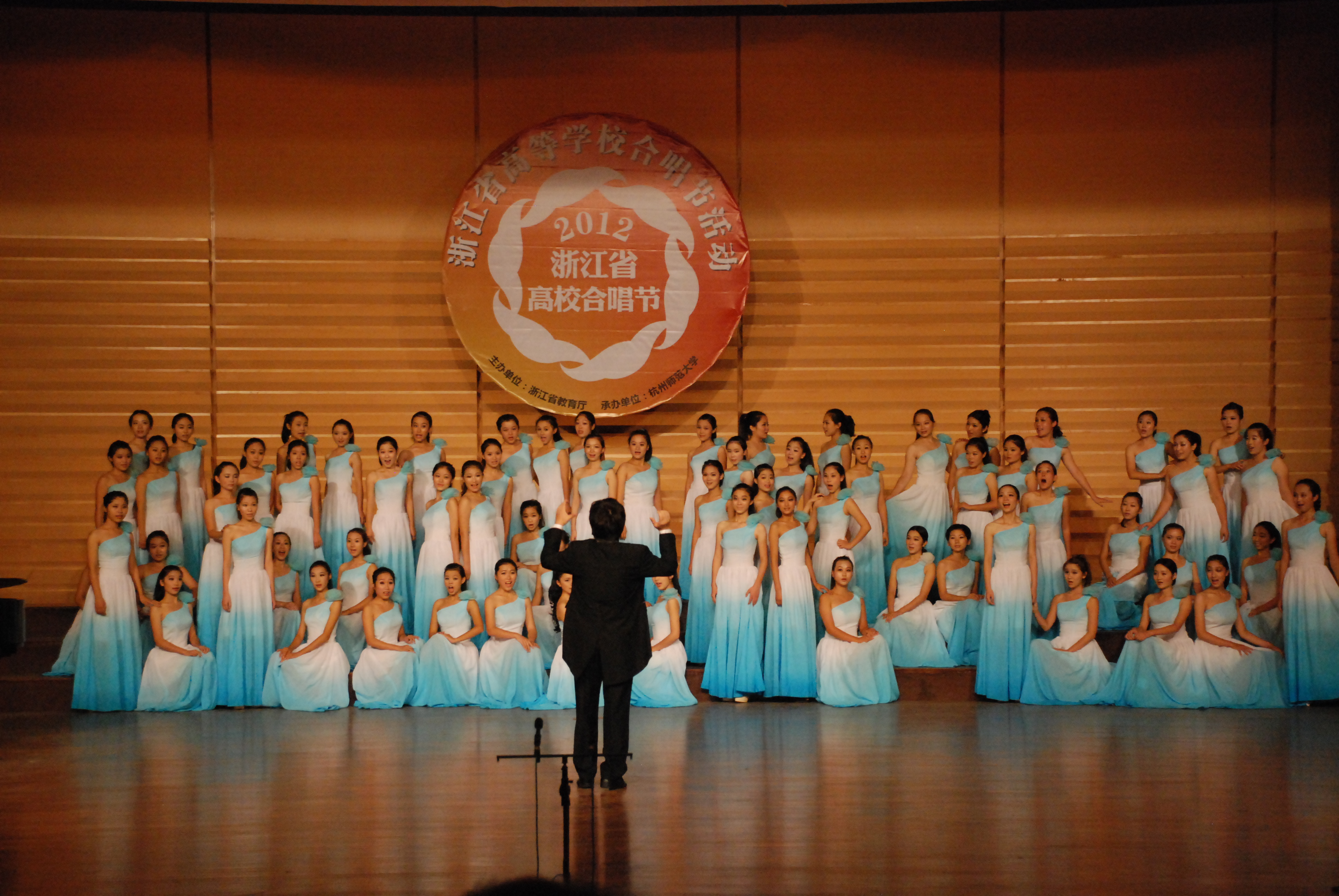 选送的同声合唱《威萨啰》、《在太行山上》,表演唱《簸箕上的麻雀》满载而归,双双荣获2012年浙江省高校合唱节活动甲组同声合唱一等奖、表演唱一等奖,叶熙熙、陈芳、陈青三名老师荣获优秀指导奖,叶熙熙老师荣获优秀指挥奖,卓媛媛同学荣获优秀钢琴伴奏奖,我校荣获优秀组织奖。合唱团和表演唱队还应邀参加了当晚举行的颁奖晚会演出。