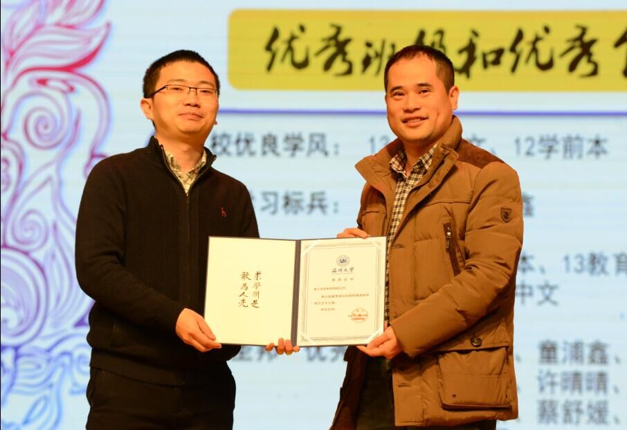 在学科与专业建设、教学工作、学生工作、文化建设等方面取得的可喜成绩,对获奖者和指导老师表示热烈祝贺,也对这些努力进取、爱岗敬业、对学院学校贡献突出的先进集体和个人,表示诚挚的谢意。“世界不曾亏欠每一个努力的人!”,最后郑院长预祝2016年全院师生能坚持奋发图强,再创新的辉煌!为了鼓励优秀老师和优秀学子,随后进行了学风表彰,教师成人色情