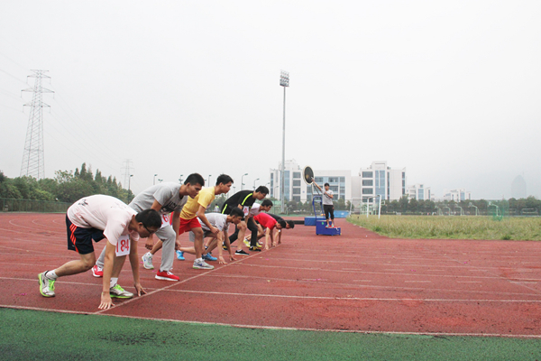 紧接着,紧张的运动会正式开始,掌声雷动,给运动员们奏响了号角。此次运动会设有二人三足、20*80米接力跑、集体跳绳等集体项目以及100米、200米、指压板跳绳等个人项目。尽管天空下着小雨,但同学们都热情地参与其中,操场上随处可见运动员努力拼搏的身影,听到观众加油呐喊的助威声。备受瞩目的田径场上,运动员的脚步不曾因为雨点而减缓,红与白交织的塑胶跑道,成了运动员们追梦的大道。随着裁判的一声枪声,运动员像一支支离弦的箭,在同学们的鼓舞中,像一朵朵彩云,被风刮着沿跑道飘去,成了一道独特的风景线。