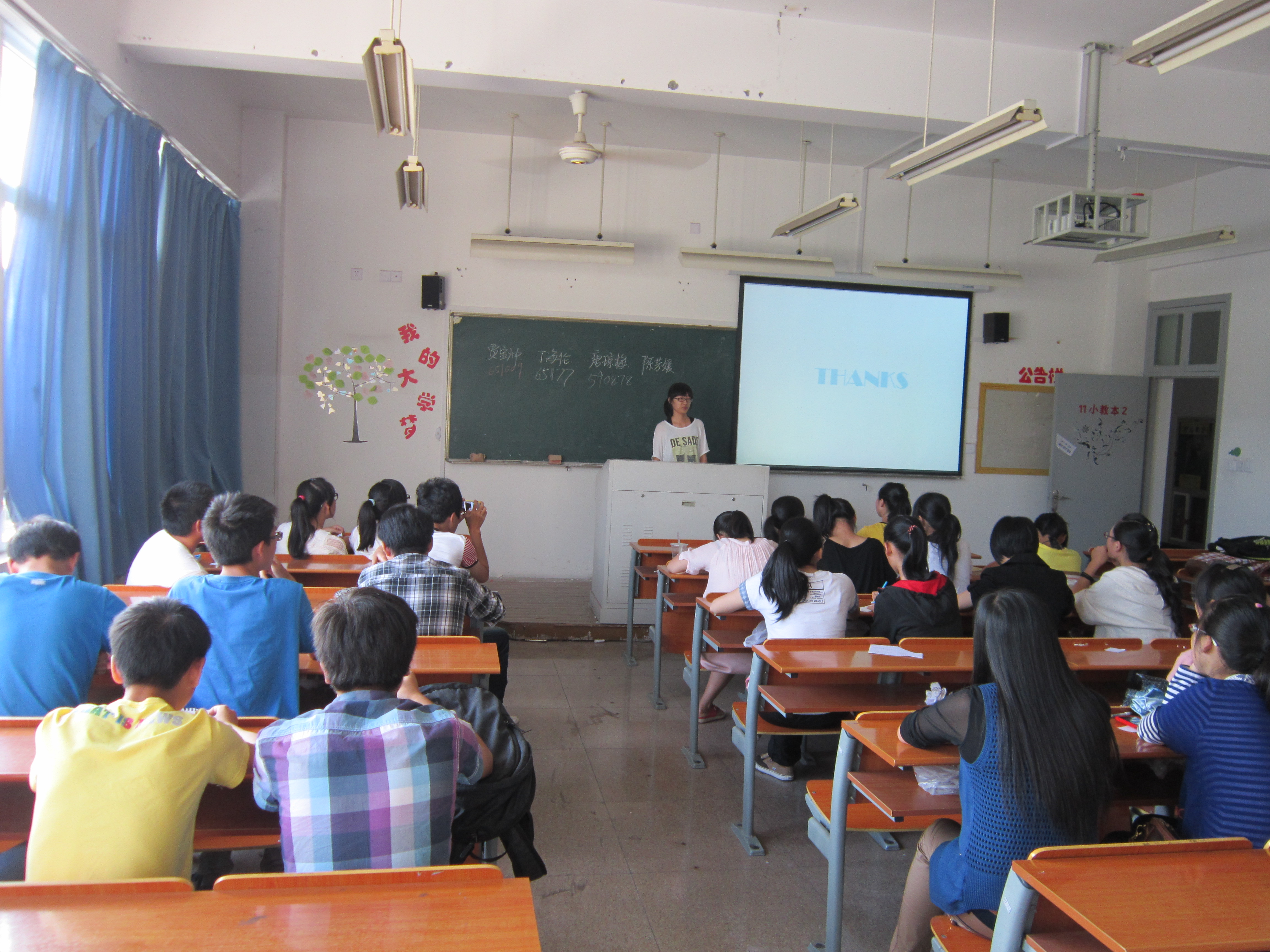 不愧是教技专业的,丁海伦同学精美的PPt展示吸引了大家的眼球。身为直系学长,他很好的给新生们展示了这个专业的优势,也让同学们对自己所学的专业有了更全面的认识。海伦用他风趣幽默的演讲向大家展示了自己的才能和特长。他还谈到了自己对班助工作的认识并承诺会认真负责地做好该做的事儿。最后,海伦同学以一句“If you decide to do it,try your best”结束了他的演讲。接着上场的为唐琼梅同学,由于技术原因,她准备的ppt无法正常放映,可她还是以精彩地演说赢得了同学们的认可。同样的,陈芳媛同学详细的自我介绍让大家对她有了一个全方位的了解,同学们充分感受到了她的真诚。