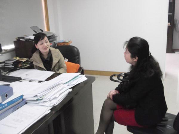 在鹿城区教育局,局党委成小华副书记对两位老师的到来表示欢迎。成书记表示,今年市区各大幼儿园的师资需求量仍然较大,幼儿教师的待遇也有了一定提高,目前区教育局已经制定人事代理性质的幼儿教师招考方案,希望学校与学院给予积极组织。此外,鉴于鹿城区对小学语文教师有较大的需求,今年的小学语文学科教师编制考,有可能放宽生源与户籍的限制,在温州大市范围内进行招考,但目前尚未最后决定。针对鹿城区教师考编时间较迟(往年一般是7月份)导致难以招到优秀人才问题,成书记表示将尽量提前考编时间。