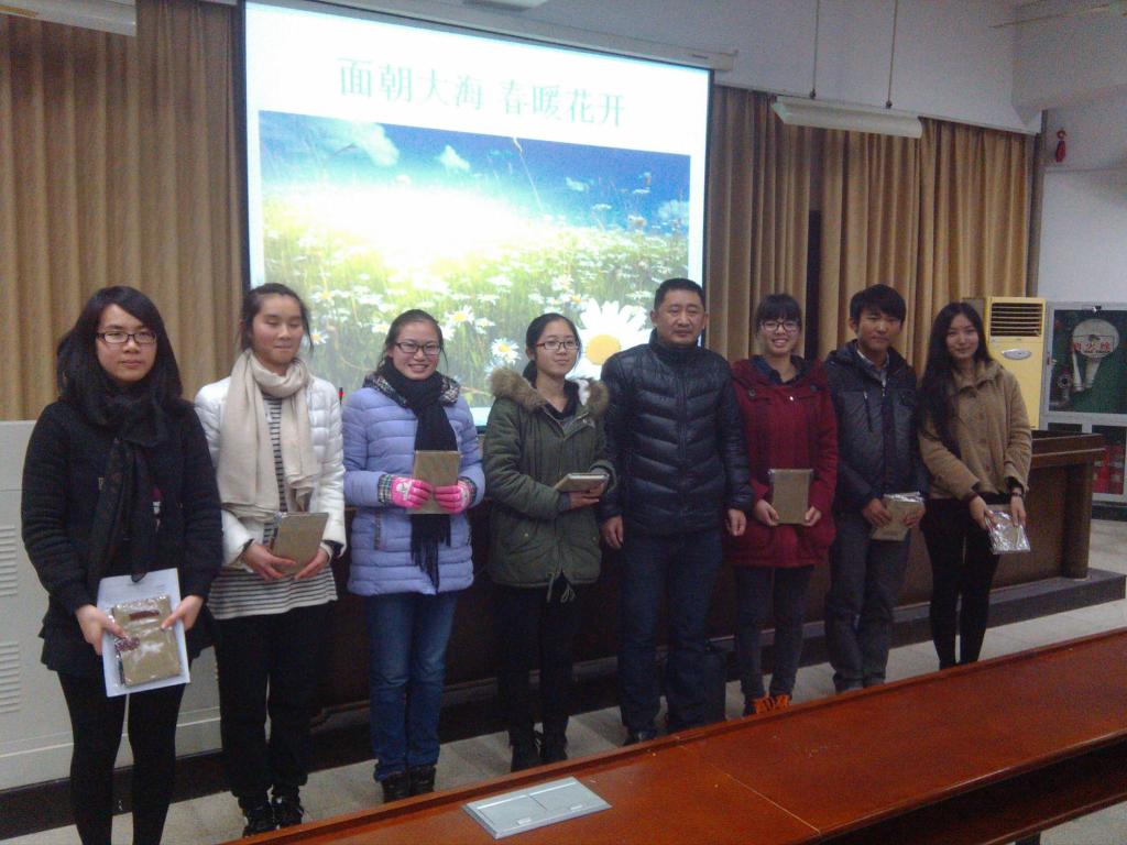2013年12月19日带着激动与期待的心情,语言工作坊迎来了每学期一次的诗文朗诵会。指导老师宋一帆老师高度重视本次诗文朗诵会,鼓励同学们积极参加,他多次与工作坊的学员们进行探讨与交流。期间,胡瑞美老师也给予了许多指导,工作坊高年级的学长也与新成员们交流了经验。在老师们的鼓励与指导下,作为朗诵爱好者的工作坊同学们自然不会放弃每一次可以锻炼自己的机会,同时也为了向宋老师汇报一下学习成果,报名参加的学员很多,选了自己喜爱的文章,开始积极的准备。