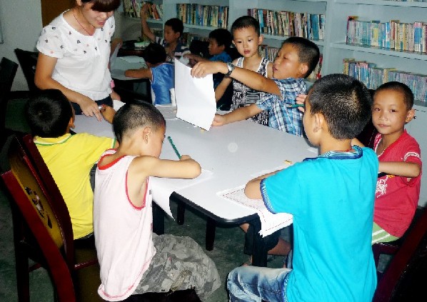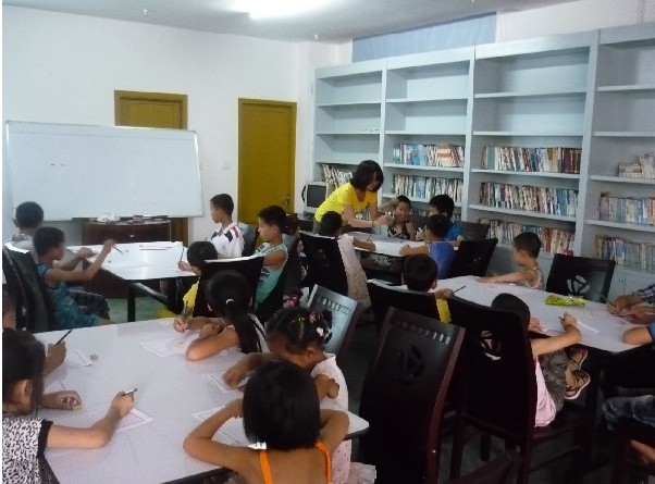 考虑到教学场地有限,队员按年龄结构先将孩子分成两组,3——6岁由幼教管理,7岁以上由队员进行教学。第一节课是益智课,队员们向孩子们讲述了很多启发性故事。但年龄较小的那组过于活跃与好动而导致教学混乱,这给教学带来极大的不便。