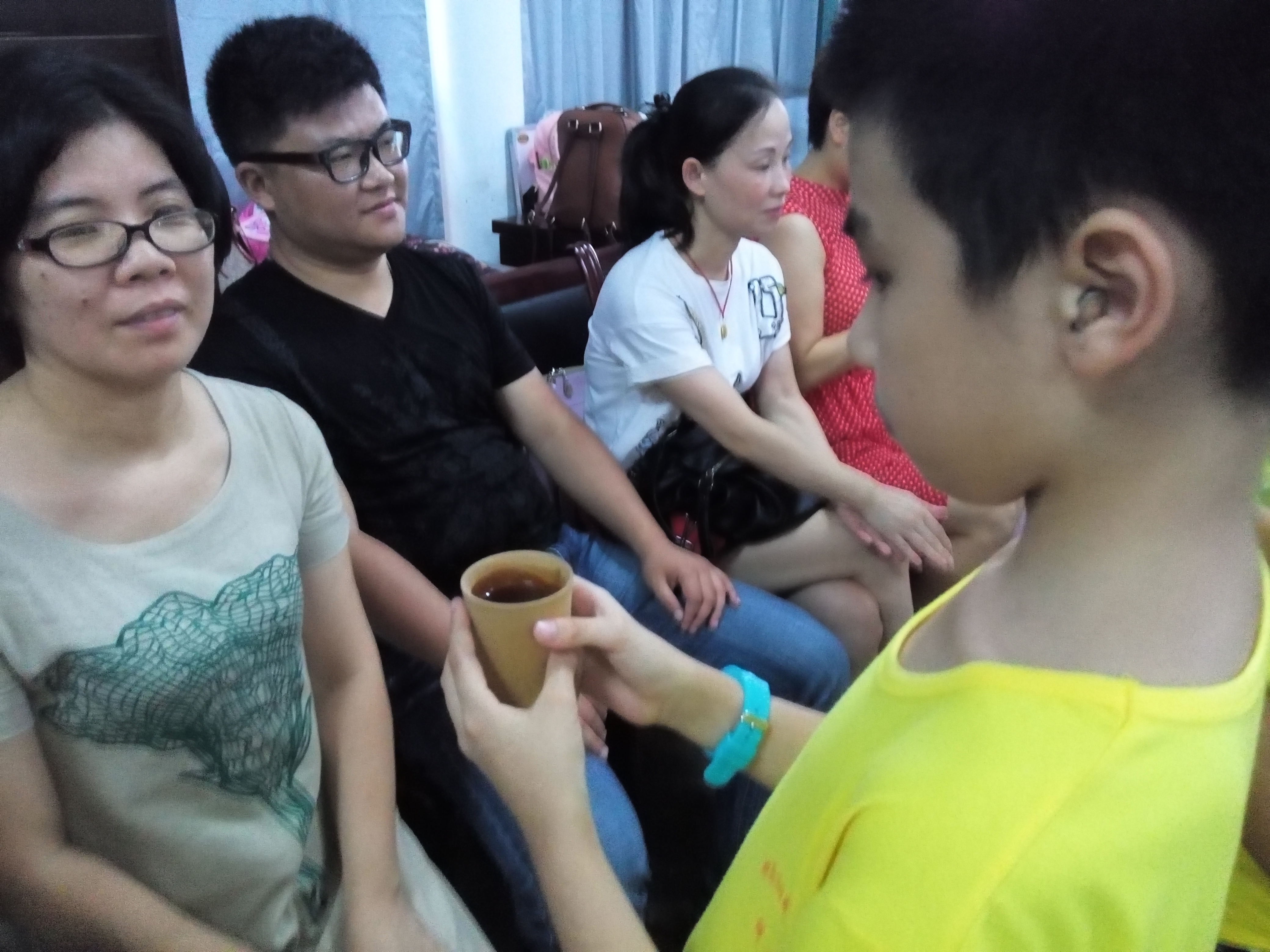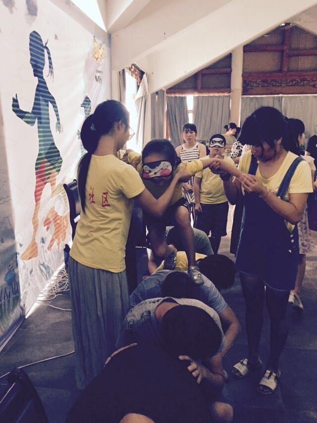 下午的课是孝亲感恩教育,社区请了一位演讲的老师过来,带孩子们体验感恩。他让孩子们做一个游戏,用眼罩蒙住眼睛,由导师扶着他们,从爸爸们的背上踩过去,但是在踩的时候,他们并不知道那时爸爸们的背,当所有的孩子都从背上走过之后,再让孩子摘下眼罩,从爸爸背上走过去,这个时候,很多孩子都哭了,爸爸们的背上是一个一个的脚印,累得有些直不起腰来,让孩子们体验到了父母对他们的付出。然后还进行了孩子们给家长敬茶和面对面站半个小时体验亲情的环节,很多孩子都很感动,在活动结束的时候对爸爸妈妈说了我爱你。