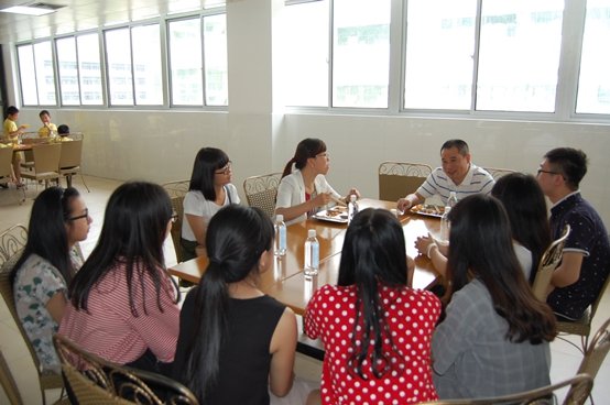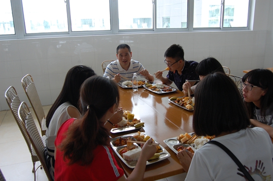 杨立淮书记谈吐幽默风趣,带动整个饭桌上的人都充盈着笑意。他的话语间,既有老师对学生的谆谆善诱,又有长辈对晚辈的殷殷期待。他充分肯定了知心姐姐这支队伍二十年来的历史,以及我们实践队做出的成绩。同时也不乏对实践队的支持和鼓励,并且以在场的黄冰融学姐为例,希望我们无论在何岗位,都要努力,都要做好。在其位思其职,拥有一颗上进心,开拓进取,锐意创新。这个中午也因本次谈话而变得更有意义,推动着实践队往前迈进。