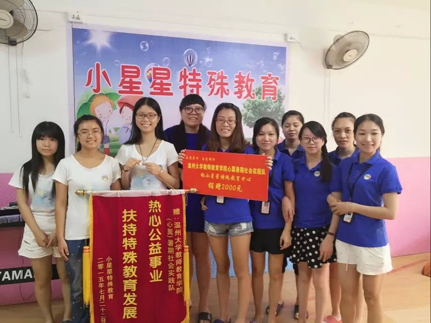 “心翼”在“小星星”的实践终于在今天进入尾声。除了例行的课程和辅助,这里还展开了一场小型的捐赠仪式――“心翼”将上次募捐得到的善款取一部分大约两千元捐赠给了“小星星”,而“小星星”则赠送了一面锦旗来表达他们的感激之情。现场家长、孩子、老师鼓掌声一片,好不热闹。负责人承诺这笔满怀温州各界人士善心的资金将全部用于每个孩子的课程费用,如此,也算不辜负捐款的爱心市民对我们的信任了。