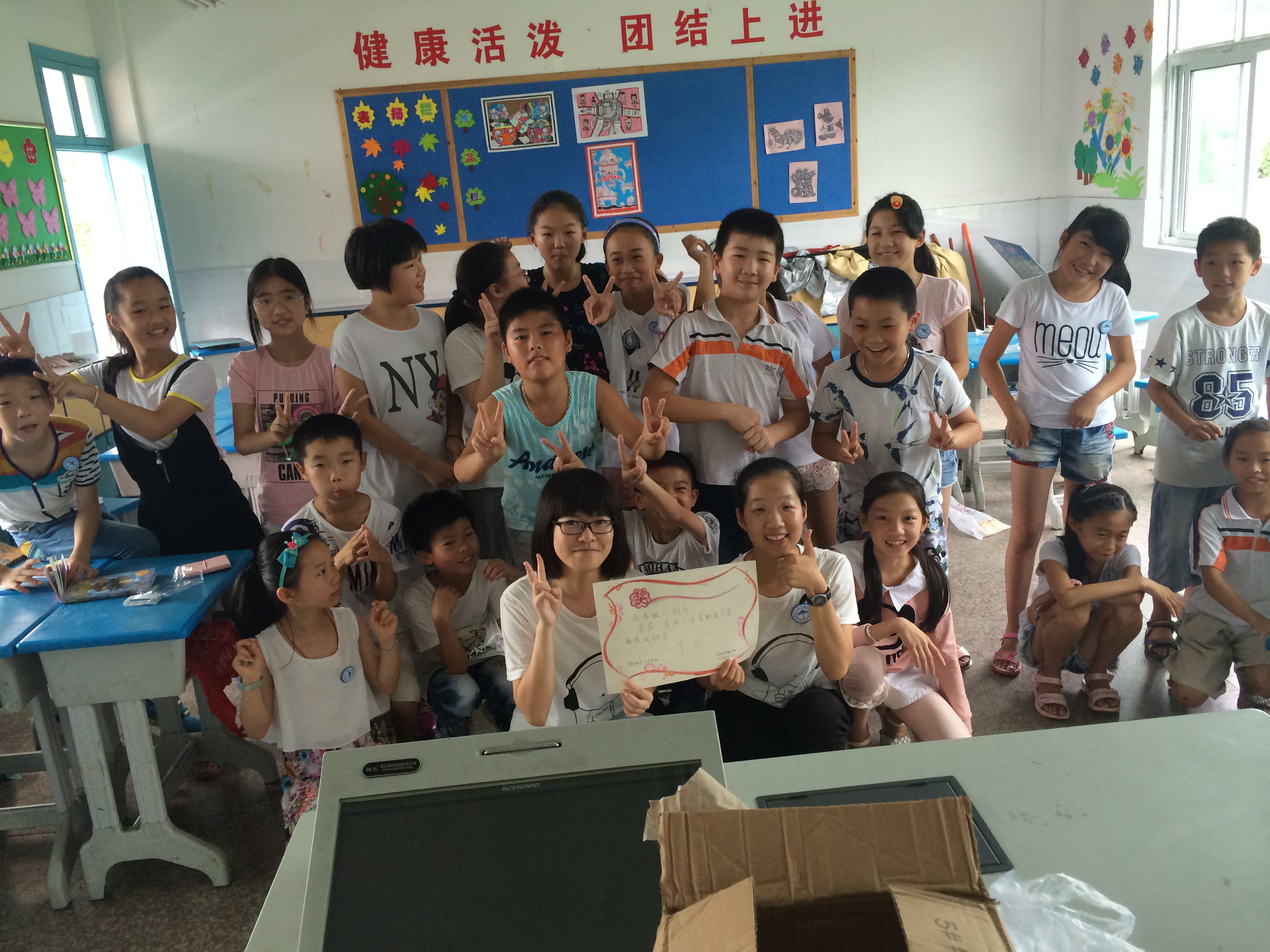 “守蓝”实践队在李井小学的倒数第二天。一大早,学生们就来到学校自觉地排练晚上汇演要表演的节目。从上午第一节课开始,在3个班主任的悉心指导下,排练工作如火如荼地进行着。学生和老师们都很辛苦,为的是晚上的汇报演出圆满落幕,更好地诠释我们师生在这两周相处时间里共同学到的亦或是进步的东西,以及互相之间产生的情感,可以说是累并快乐着。另外,今天是我们实践队中一位队员的生日,看到三年级学生在黑板上画了很多颗爱心,边上写了满满的对自己班主任的祝福语,想必我们都会感觉有一股暖流涌上心头,忍不住赞叹那个记得老师生日的孩子。