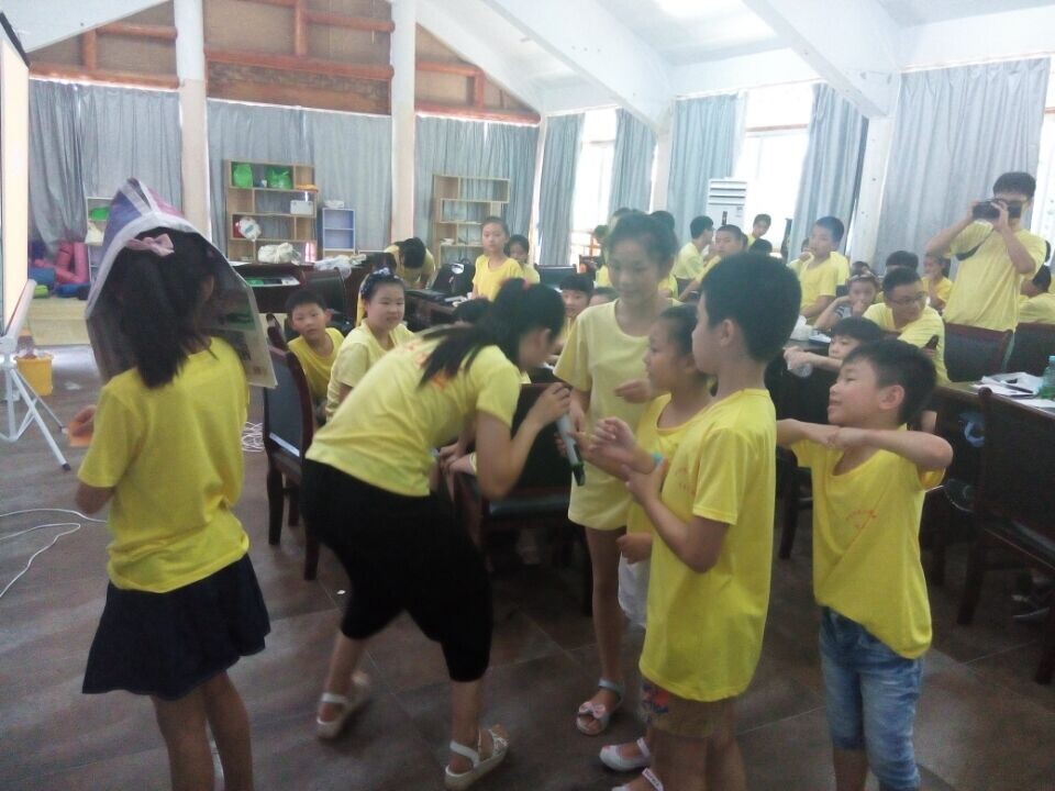 最令人期待的是下午的变废为宝的课程。孩子们其实一早就把自己家里带来的废品摆在了桌子上,等着自己大作的产生。他们打开自己的想象力,创作出各种神奇的东西:军舰、吊兰、火箭等等。一个个拿着自己的作品到处炫耀着,展示给大家看。看到他们脸上的笑让我们也很开心。