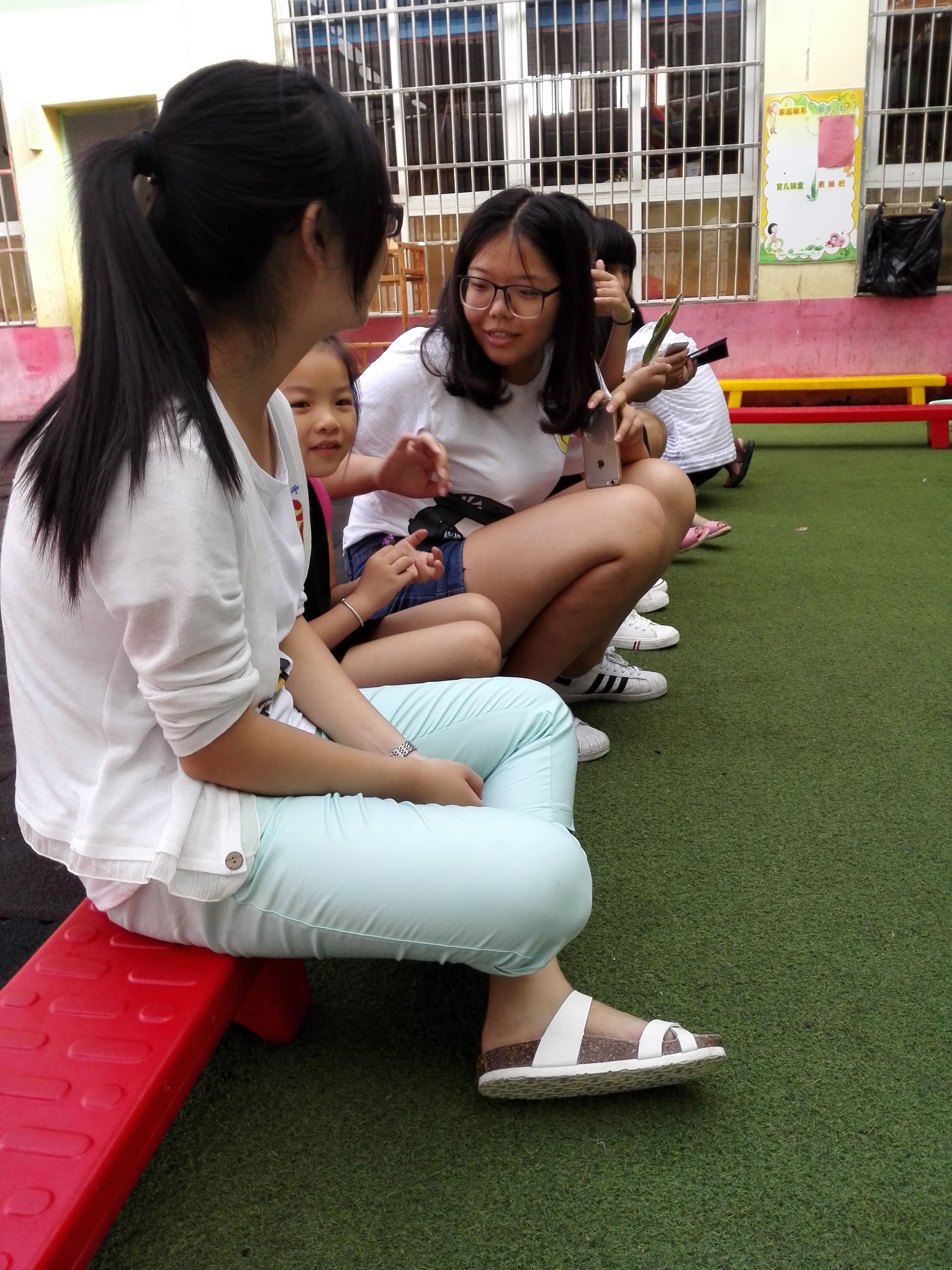 九点许,队员们迫不及待进入分配好的班级,从阳光初照到日落迟暮,从稚嫩的小班到“稳重”的大班,手工课,美术课,语言课,在上课风格各异的老师们引导下,队员们同小朋友们一同被带入一个个神奇的境界,越发的期待今后的实践活动。