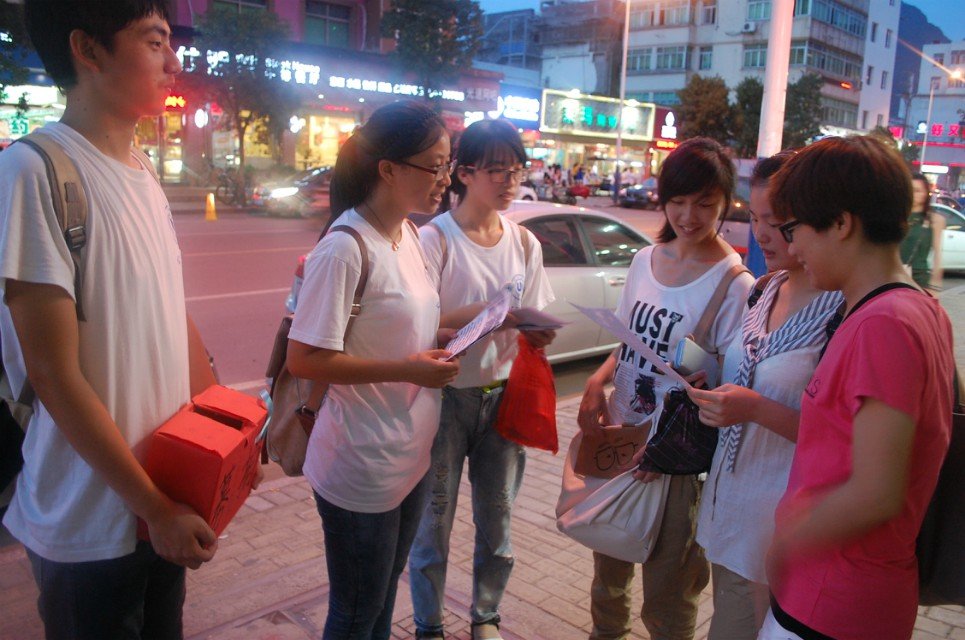 7月5日,是心翼实践队的队员们第一次为那些自闭症的孩子们募捐的日子。天气还是如往常一样炎热,但是队员们的为孩子们募捐的热情比太阳还要火热。