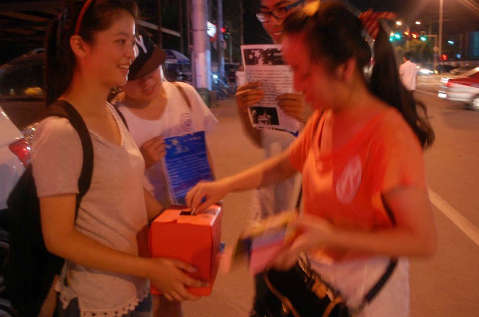 好在社会上好心人还是很多的,有两个路人很慷慨地捐了200元。这让队员们兴奋不已。