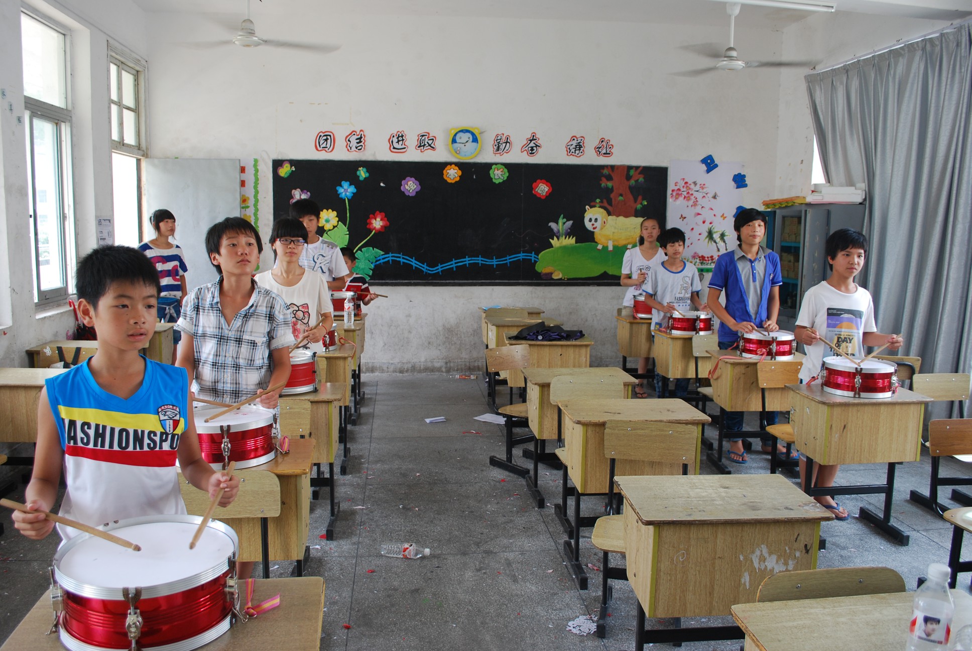2012年7月13日中午,整个校园被“咚咚”的鼓声包围,这是谁在打鼓呢?原来是我们的瞿老师带着我们快乐小鼓队的小队员们在排练他们的小军鼓呢。