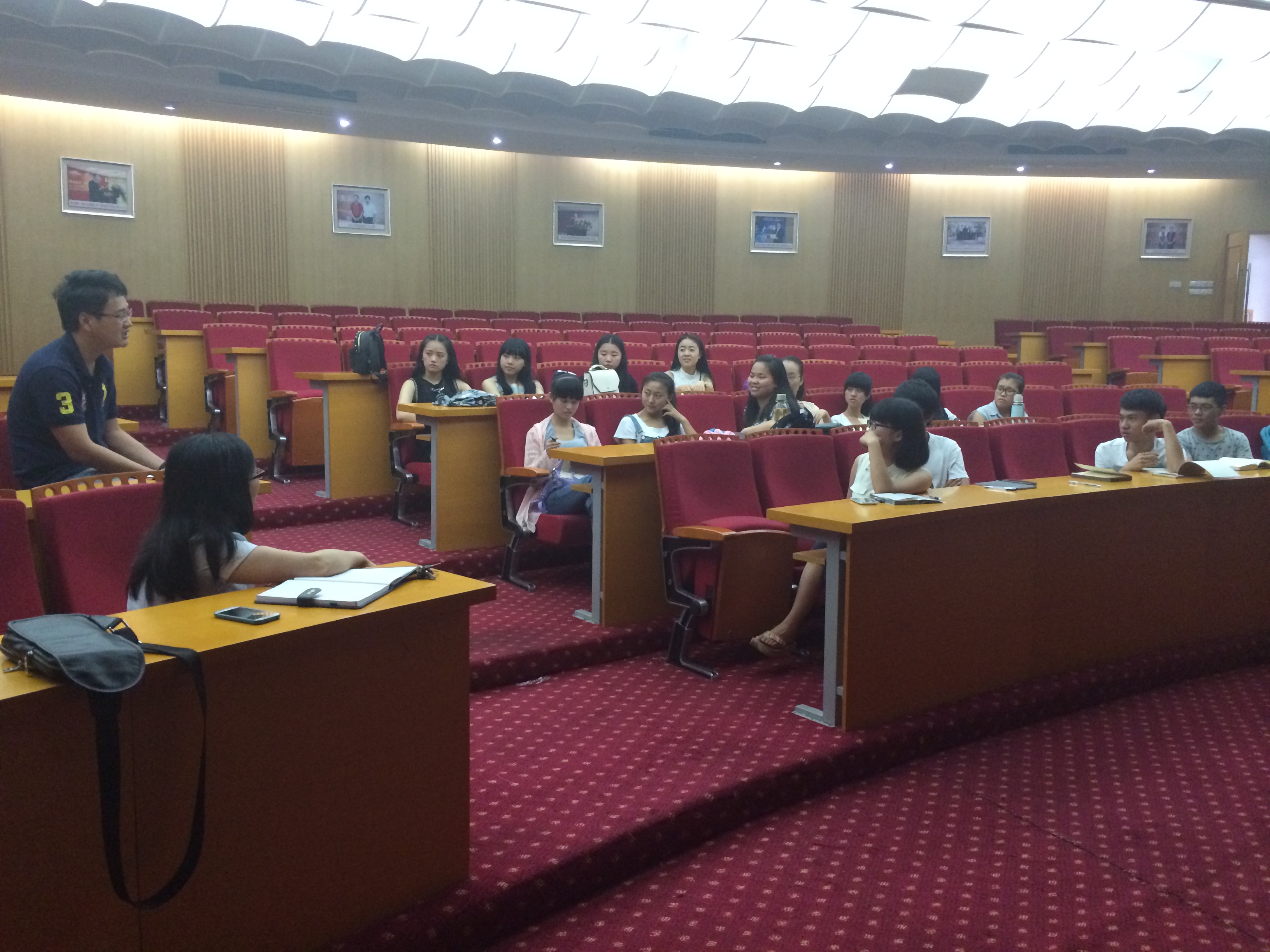 早晨伴随着激动的憧憬,队员们在会议室迎来了我们的另一批队员,她们都是参与过奥康第四届夏令营的老师。队员与队员之间略带幽默的自我介绍,让会议室充满了笑声,也使队员们更加了解彼此。除此之外,因为有上届老师的加入,使队员们对接下来的奥康夏令营活动有了更多的认识、更深的了解。午休过后,这支“重组”后的实践队来到了会议室,开启了这个夏令营真正意义上的第一次会议。开营仪式的流程校对、节目的确认以及老师的分班安排是这次开会的主要目的。实践队针对这几个方向,都提出了可行的意见。一个下午,实践队队员们积极、热烈地讨论着,希望能将这次夏令营做的更精彩、更难忘。