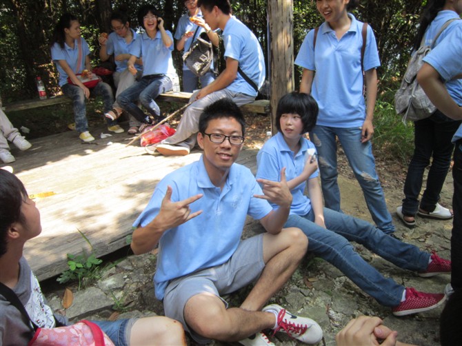 本来以为下山会是顺风顺水,没想到更叫一个苦不堪言。困、渴、饥、痛……两脚肿的连鞋子都觉得紧。一个个都撑起了拐杖,还有那些相互搀扶的身影,感动呀!说到这,我还要感谢那后来一路帮我背那个沉重“负担”的蔡老师。