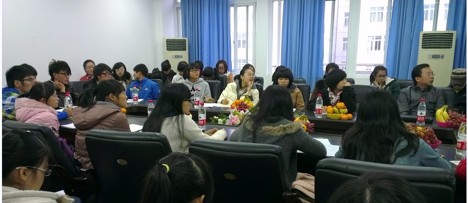 研讨课在热烈的气氛中展开,王佑镁老师结合本班前期在温州中学见习情况,与大家分享了信息技术对这所省级重点中学的促进作用,进而引出教育技术学的努力方向和发展要求。回忆起这短短的一周,同学们都感触颇深。而后,谢作如老师就“如何成为一名优秀的教育技术从业者”分享了自己的成长经历,主要介绍了个人历程、选修课程开发,《互动媒体技术》的开发历程、未来的准备等四个方面,与大家深入探讨了本专业的现状及前景。研讨之末,谢老师告诫大家“做自己擅长的”,这也是专业定向时最核心的标准。他的经历诠释了“小目标也可以成就大梦想”,给了我们极大的鼓舞;他的话语谦虚幽默,传达了对我们新一代的殷切期望。会中,大家边吃水果边交流,老师们亲切的面孔让我们倍感温馨。最后,张新立老师为大家介绍了12级实践教学体系,明确了本专业四年发展方向。
