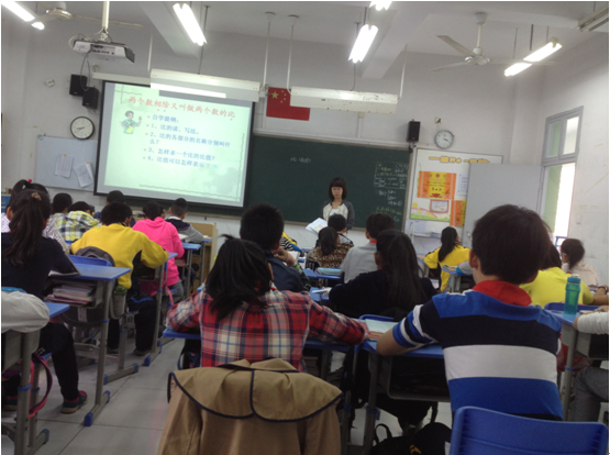 心理系陈秋珠老师和我们七位实习生第一次一起听了百里路小学章煦老师的一节高年级段的数学课。课堂上,章煦老师以充实的教学内容、合理的教学安排、生动的讲解、活跃的思维营造了一堂氛围良好的数学课,不仅帮助学生很好地掌握了教学内容,而且感染了我们在座听课的每一位实习生。