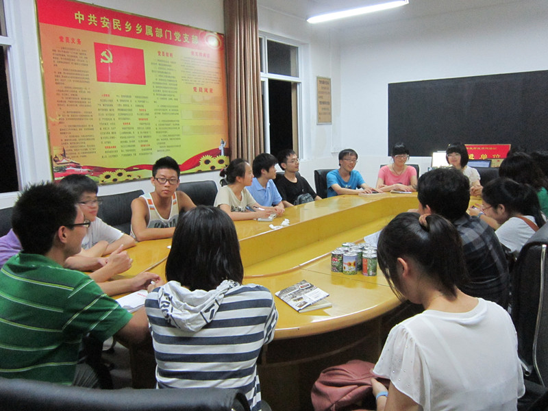 安民·萤光暑期社会实践队召来了来到安民后的第一次会议。此次会议的主题是讨论关于最终的汇报演出的问题,通讯及感言的要求,以及安岱后的拜访计划。