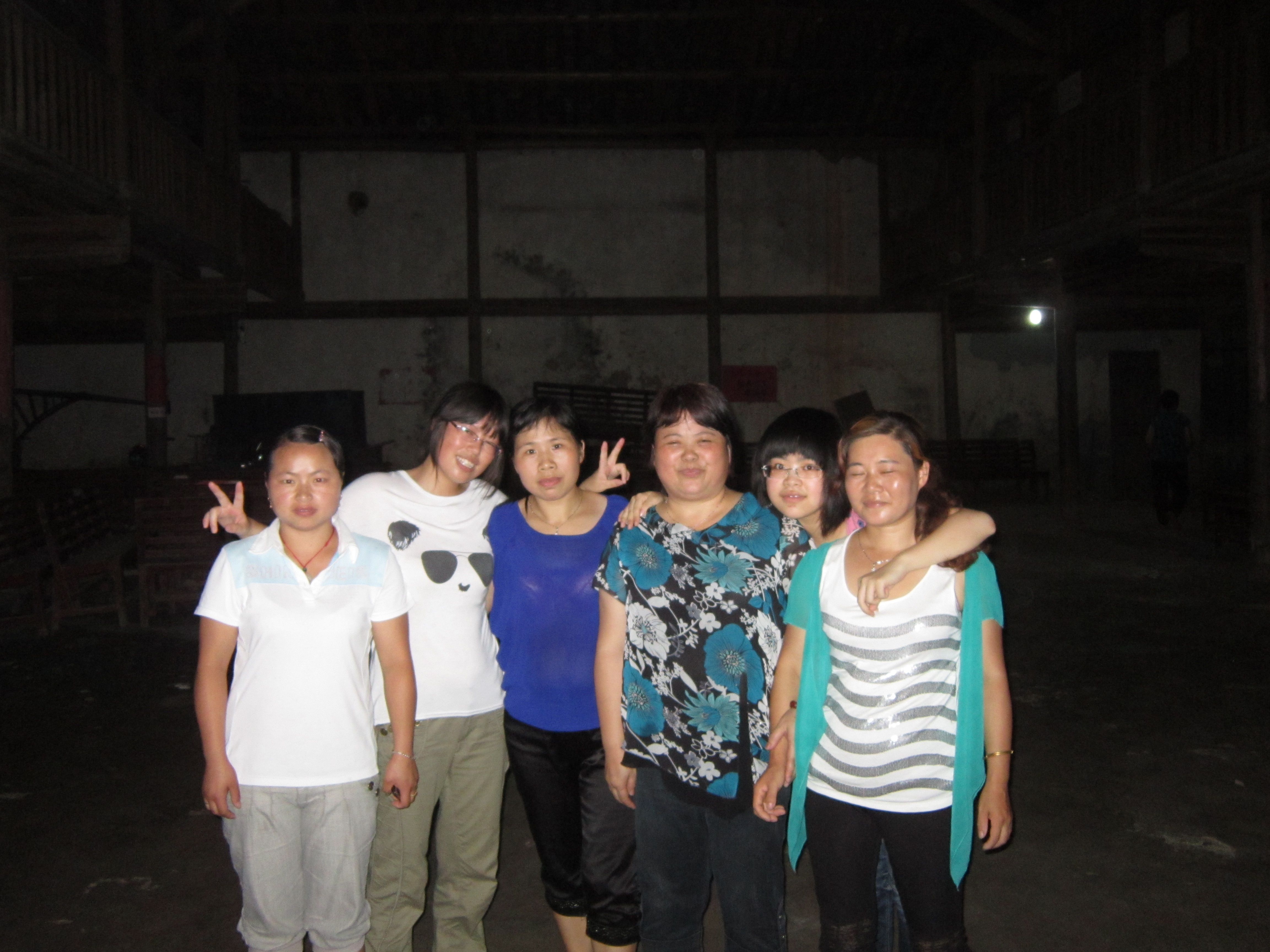 陈老师对我们的到来表示欢迎,很热情的招待我们。她好像非常的害羞,总是躲着镜头。她说,如果我们有任何的困难,都可以去找她,也可以使用办公室的设备。让我们很不好意思。这次讨论的主要问题就是关于最后的汇报演出的各项事宜。首先,就是节目单的制定。我们表示,我们会出包括合唱,舞蹈等的节目。因为我们的汇报演出是与乡里的一个农民文化节联系在一起的,所以乡里也会出一些节目,包括广场舞啊,独唱等。乡里也会提供场地,舞台的布置和音响也是乡里负责的。所以,安民乡真的是为我们提供了极大的便利。其次,就是演员们的衣服。因为乡里的衣服也不是很多,所以,更多的只能是我们自己解决了。最后,就是关于主持人的选定,节目的先后顺序等一些小问题的讨论。我们也都取得了共识。陈老师确实是一个十分和蔼的人。她对我们帮助良多。快要结束的时候,她带我们去他们排练的地方,去看广场舞。结果我们到那里的时候,却是大门紧闭,原来她们今天晚上休息了。陈老师为了让我们感受一下广场舞的魅力,一个电话把好几个阿姨叫了过来,跳给我们看。随着节奏感强烈的舞曲响起,阿姨们开始起舞了,我们都手足无措啊,阿姨们就带着我们一步步地跳,很耐心地教我们。虽然我们都不是很会,但是阿姨们的热情感染了我们,不管三七二十一先跳吧。阿姨们还夸我们学的很快呢!我们还约定明天还要来和阿姨学舞。