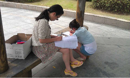 早上文化组和安全组在把问卷进行分类整理之后,大家就热火朝天地进行问卷分析,大家各司其职,分工明确,有条不紊的对问卷进行筛选、分析,然后组长将结果汇总。大家围坐在凉亭边,发表意见,畅谈自己对数据的看法,进行总结发言,分析整理发言之后,各个组员又收到了不同的任务,回去后对自己所负责的那部分做更为精确完善的的分析总结。