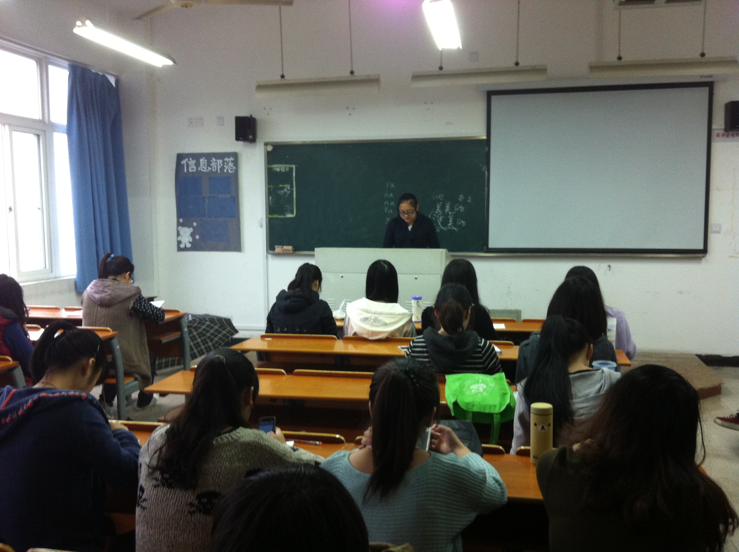 2012年11月9日早上,11小教本中文班在北3-410室进行了本学期的第三次读书会,由陈京京同学担任主讲。