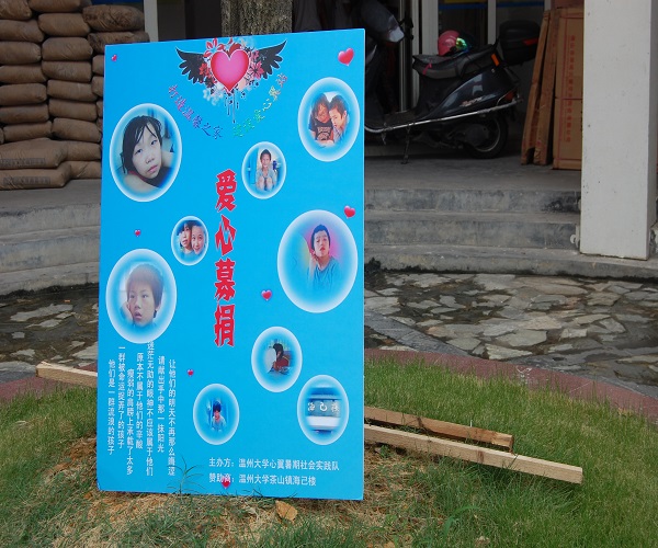 心翼暑期实践队在鹿城上田小区举办了一场小型的募捐活动。