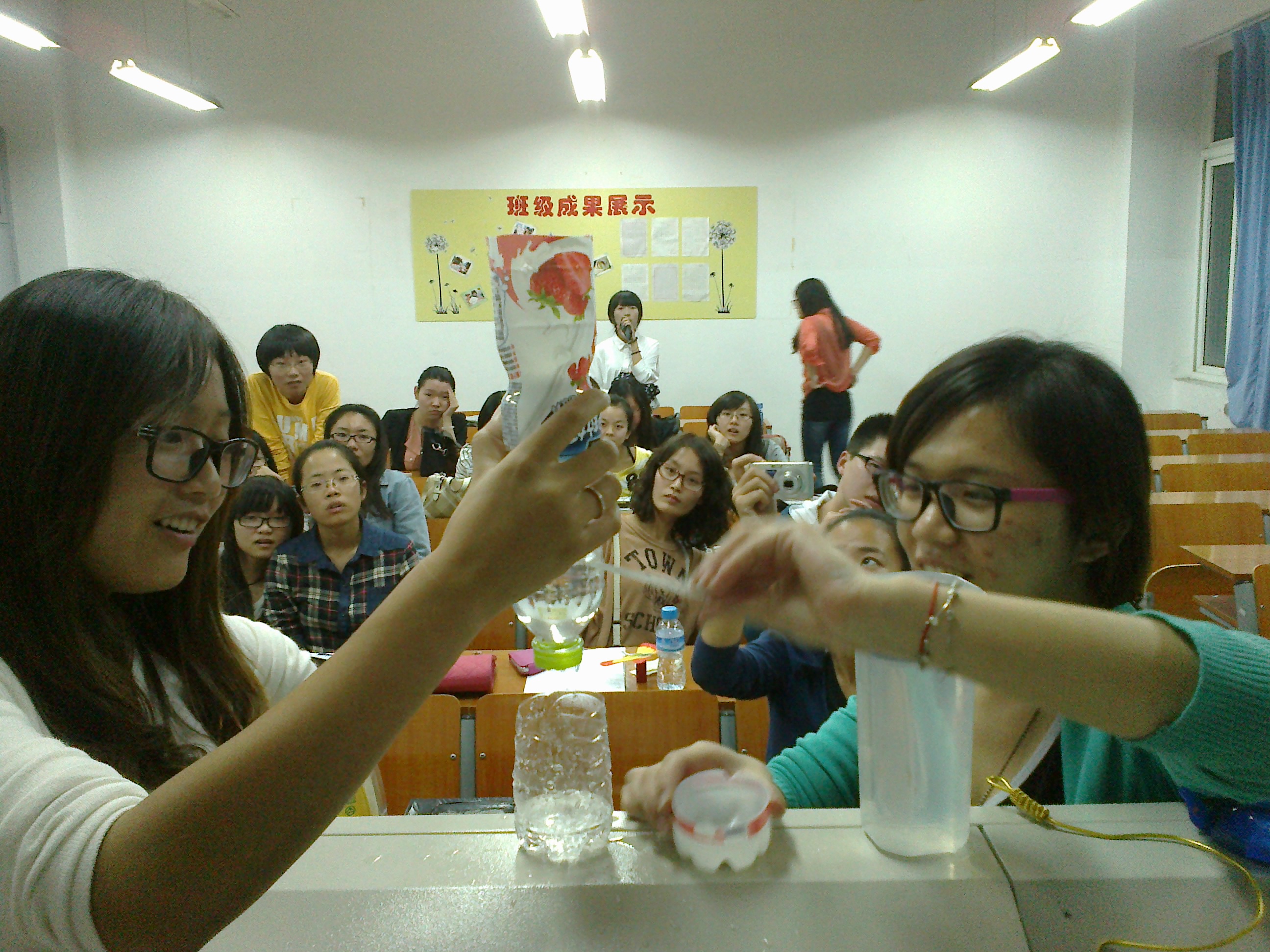 《科学课程标准》中指出:科学课程是实践性很强的课程,教师需带领和指导学生进行大量的观察实验、动手操作等活动。为适应新课程实验教学,加强同学的实际动手实验思维与能力,本班级组织开展了此次活动。并邀请了09科学班班长张红叶同学的观摩指导。
