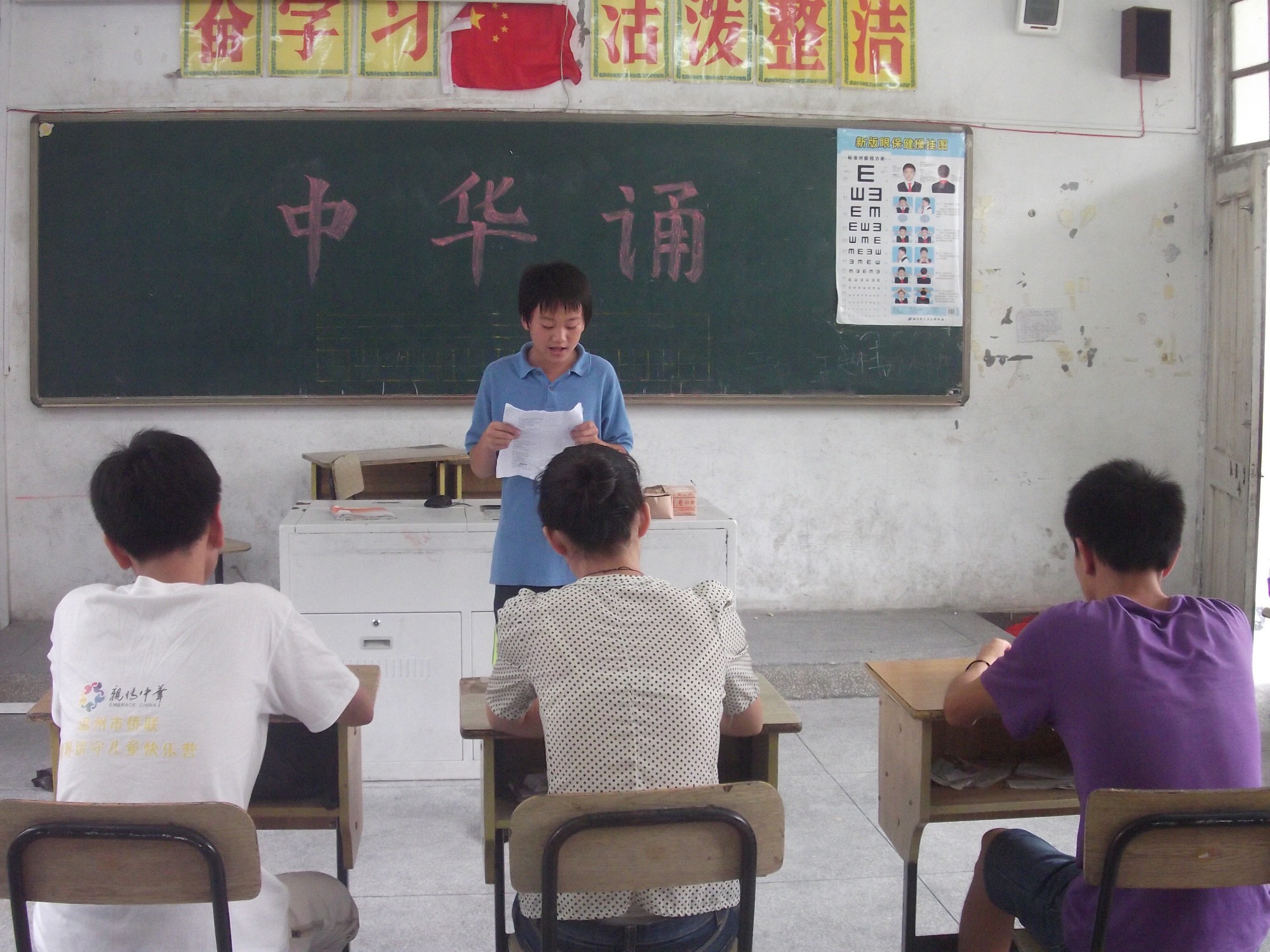 “牵手母语情暖侨乡”服务地方社会实践队在瑞安市高楼镇枫岭学校举行了“中华诵”朗诵比赛,众多营员踊跃参加,为这激情四射的暑假增添了浓墨重彩的一笔。